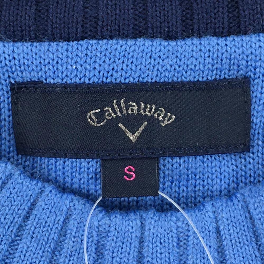 キャロウェイ セーター ライトブルー×ネイビー ボーダー ウール混 ニット レディース S ゴルフウェア Callaway