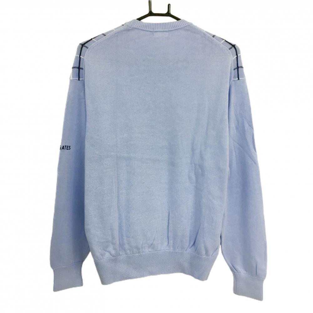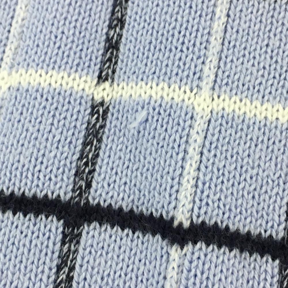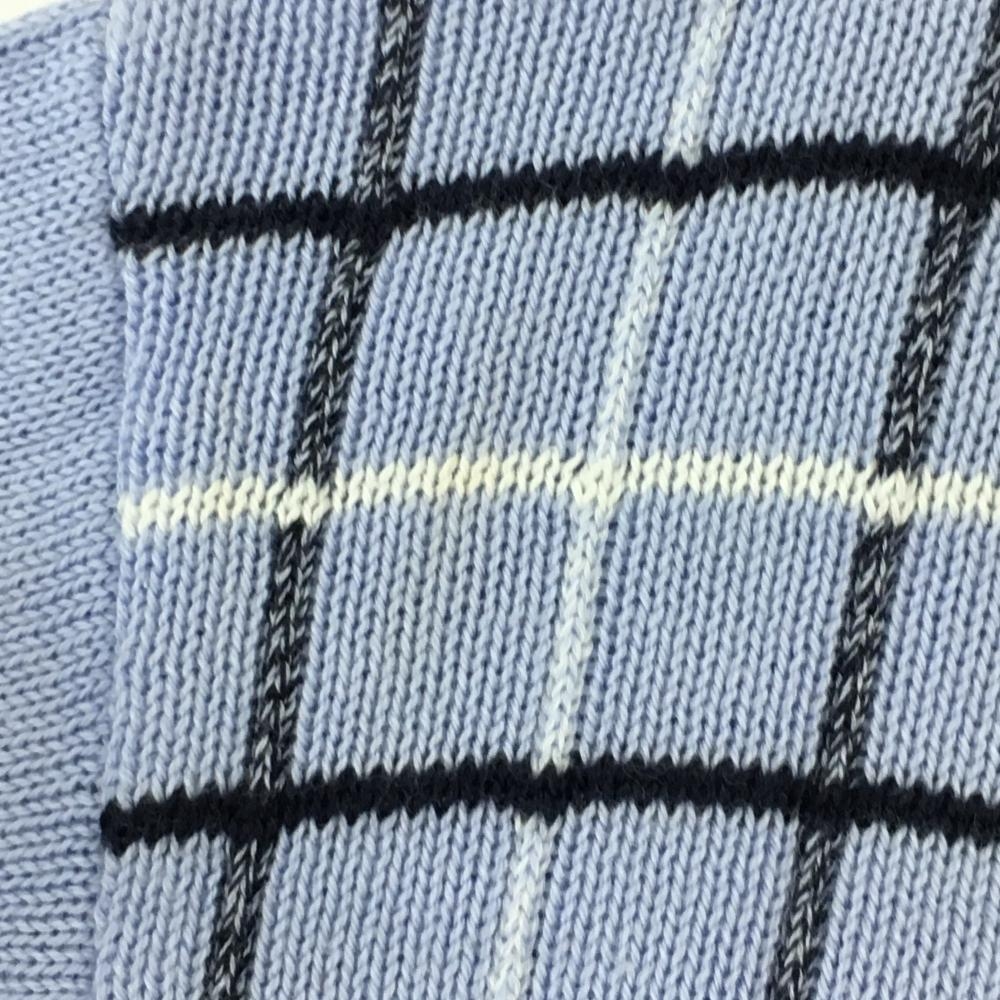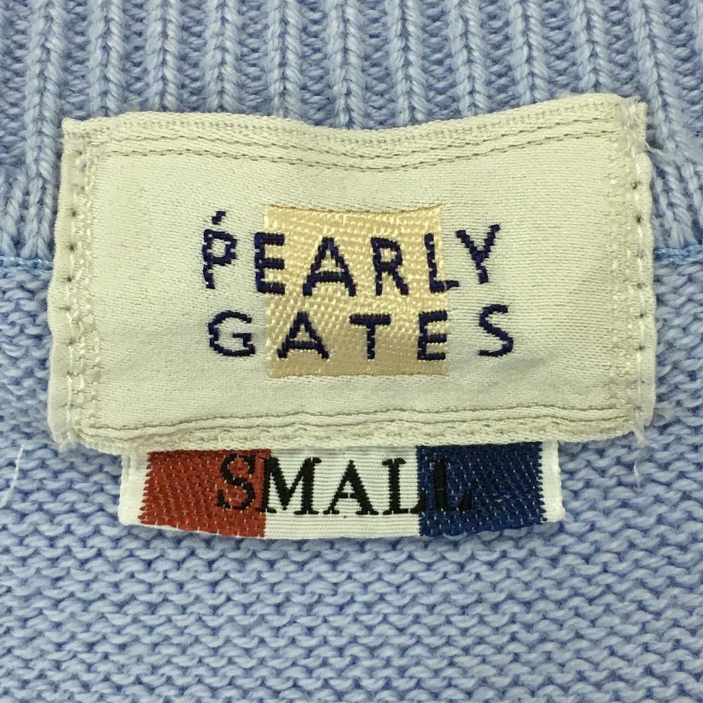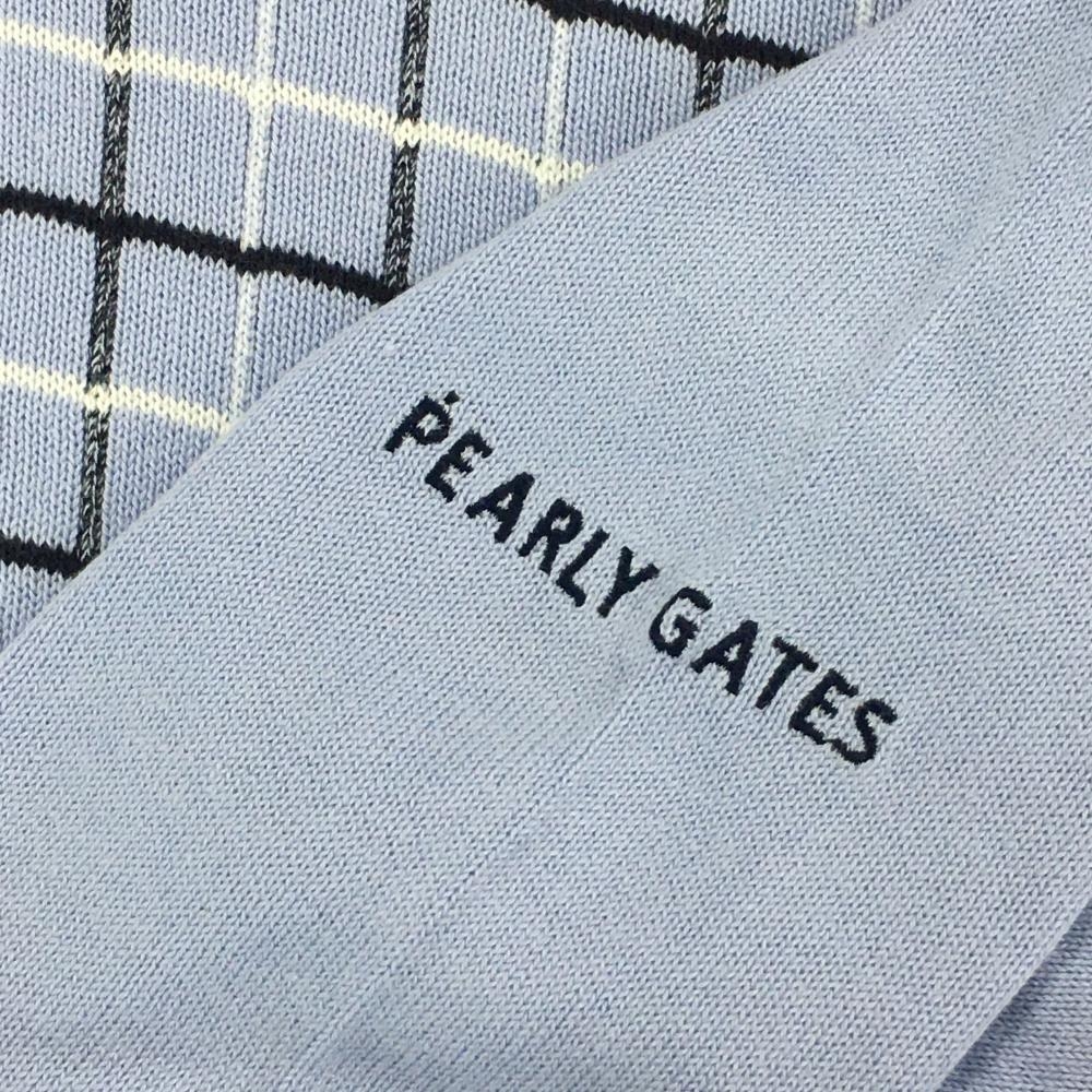【美品】パーリーゲイツ セーター ライトブルー×黒×白 格子 コットン ニット メンズ SMALL ゴルフウェア PEARLY GATES