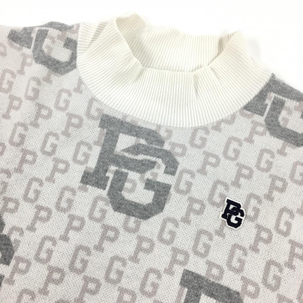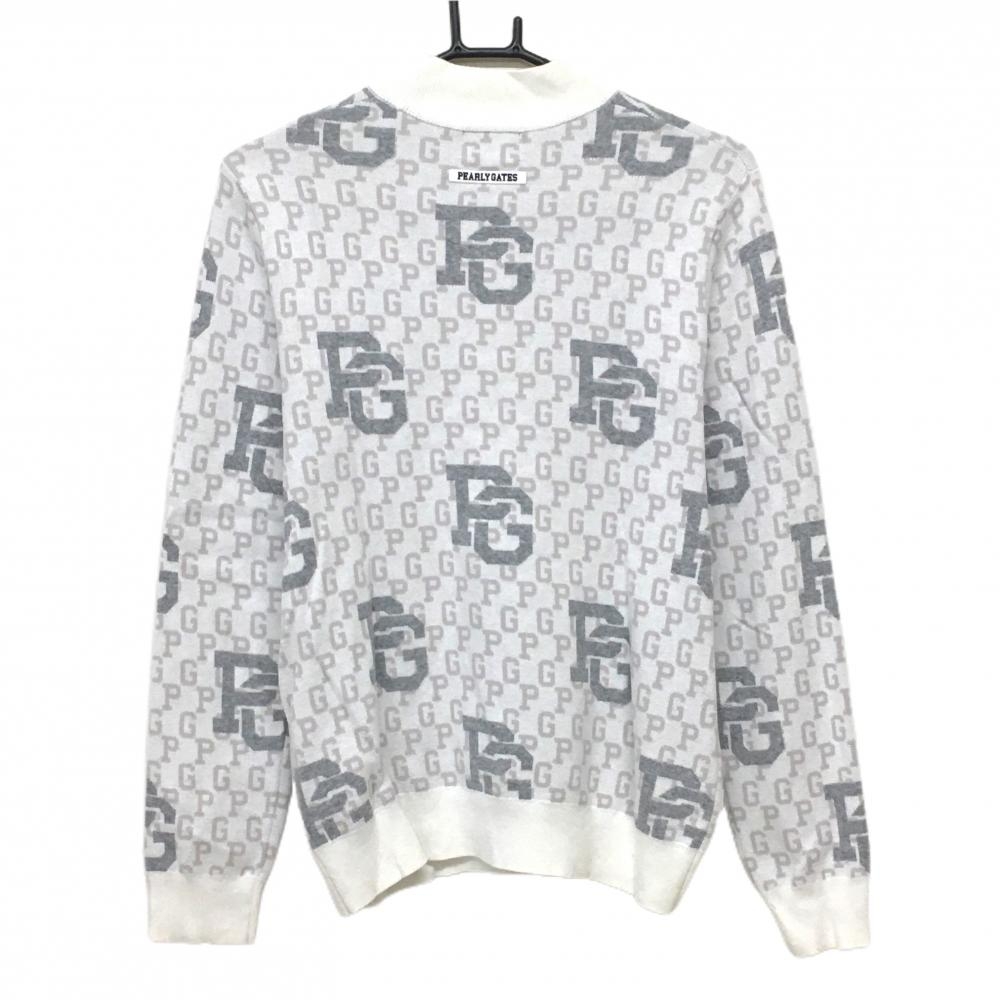 【超美品】パーリーゲイツ セーター 白×グレー ロゴ総柄 ニット レディース 2(L) ゴルフウェア 2024年モデル PEARLY GATES
