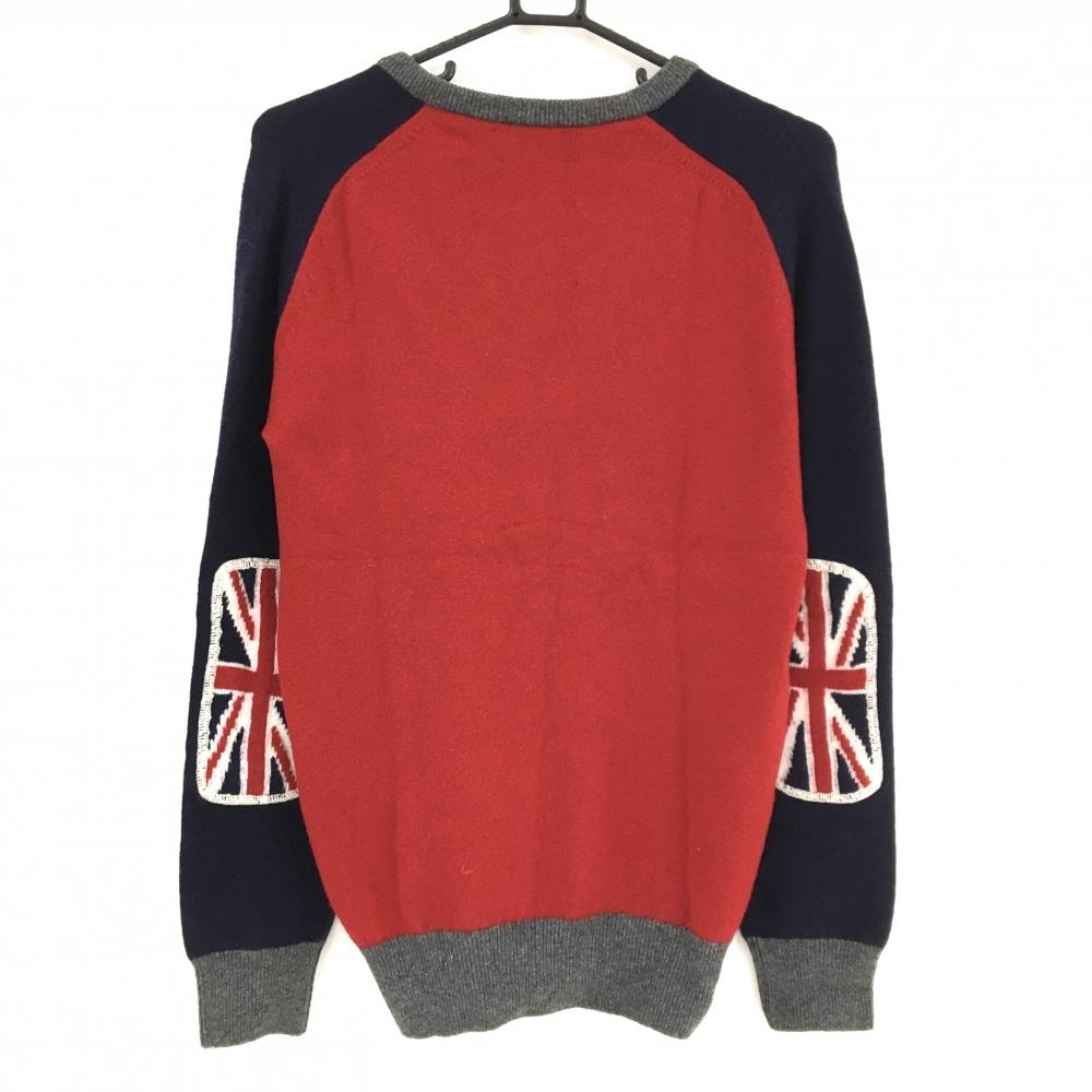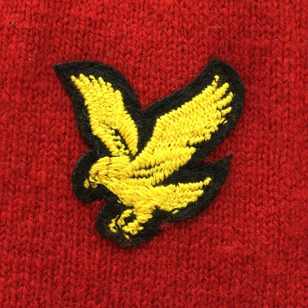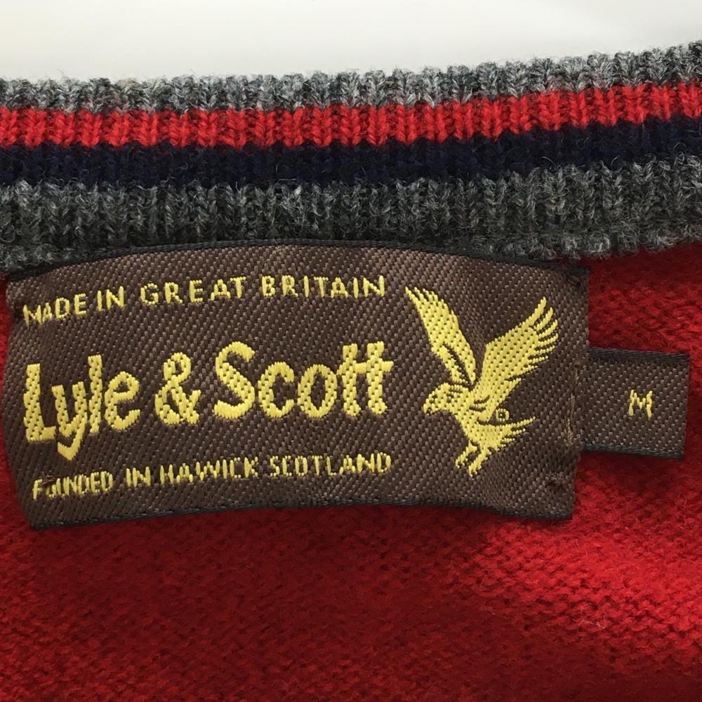 【超美品】ライルアンドスコット セーター レッド×ネイビー Vネック ウール メンズ M ゴルフウェア LYLE&SCOTT