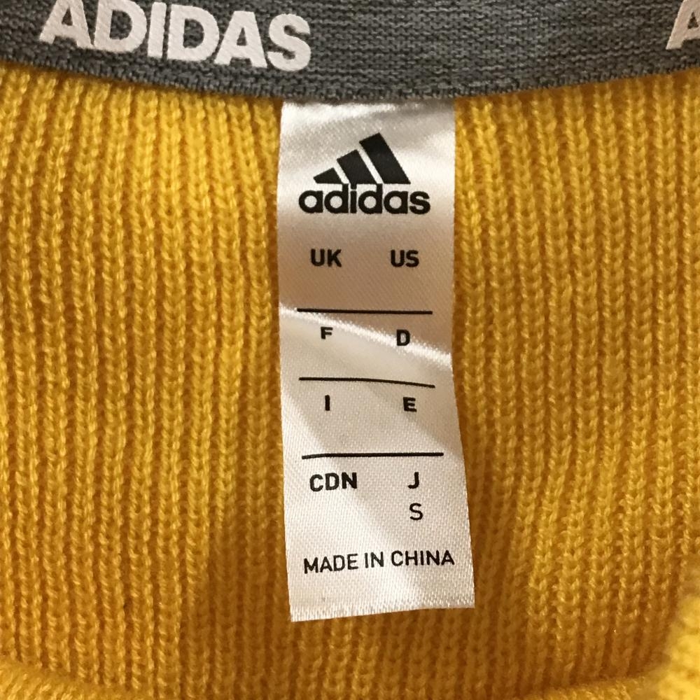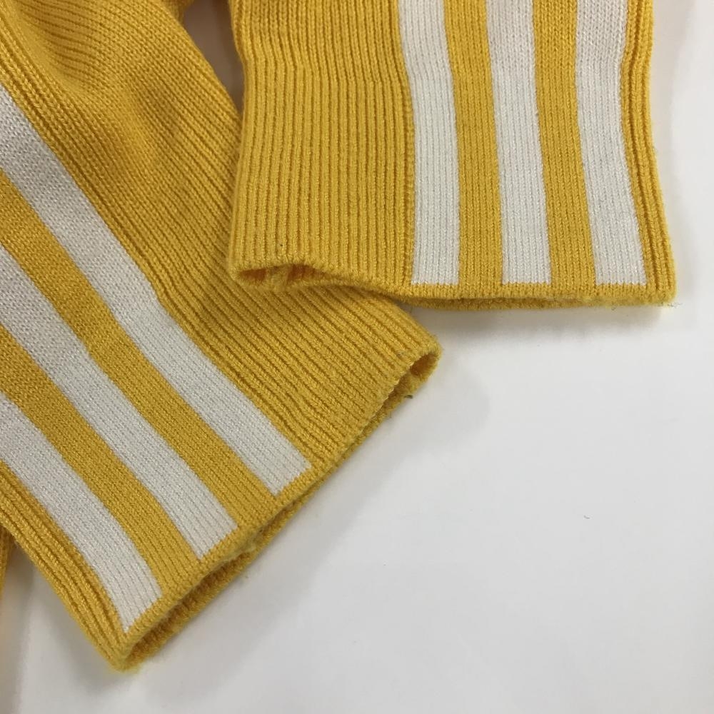 【美品】アディダス セーター イエロー系×白 袖3ストライプス ウール混 ニット レディース S ゴルフウェア adidas