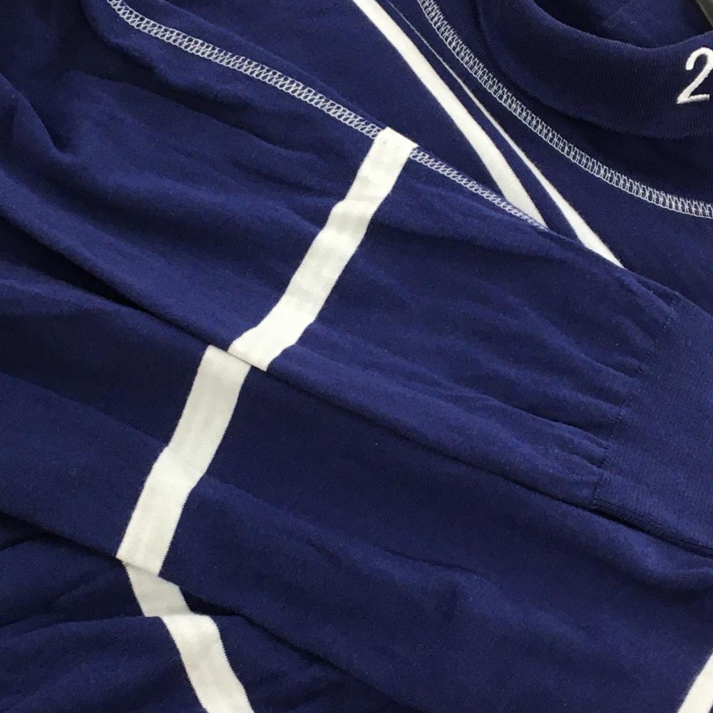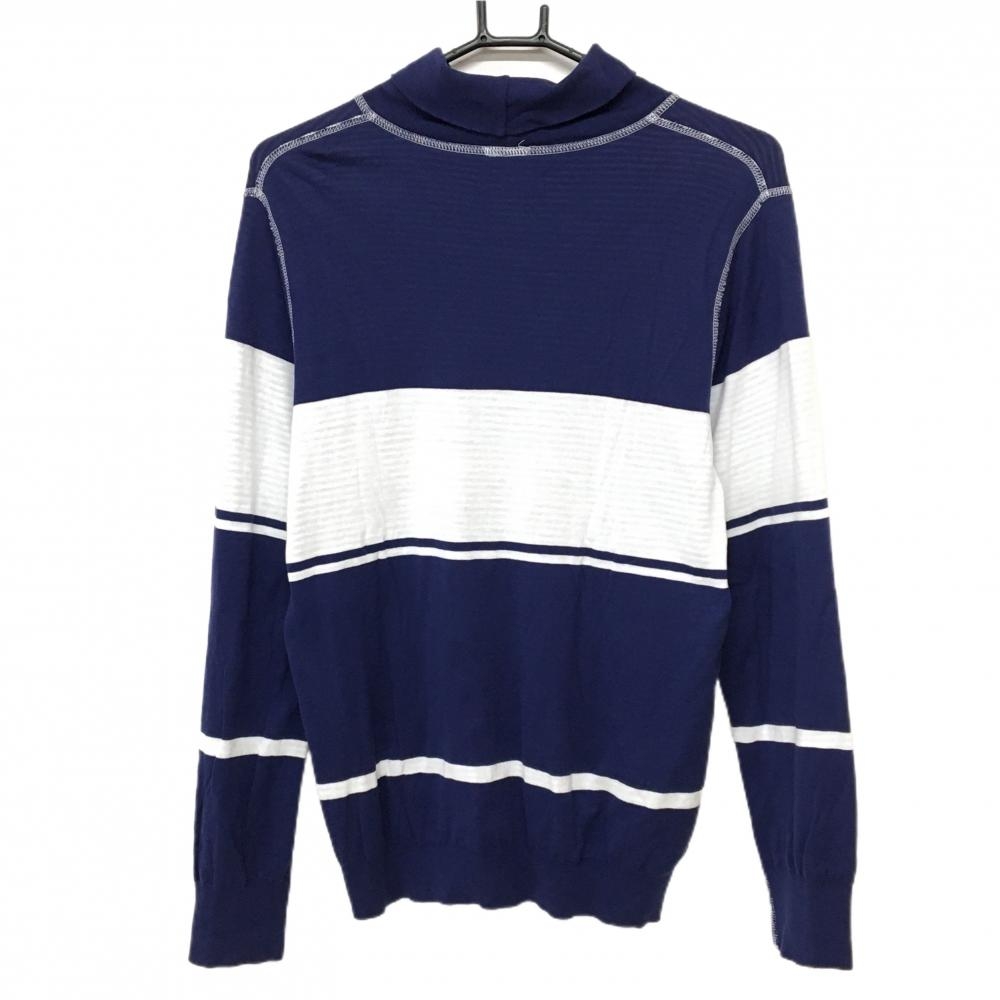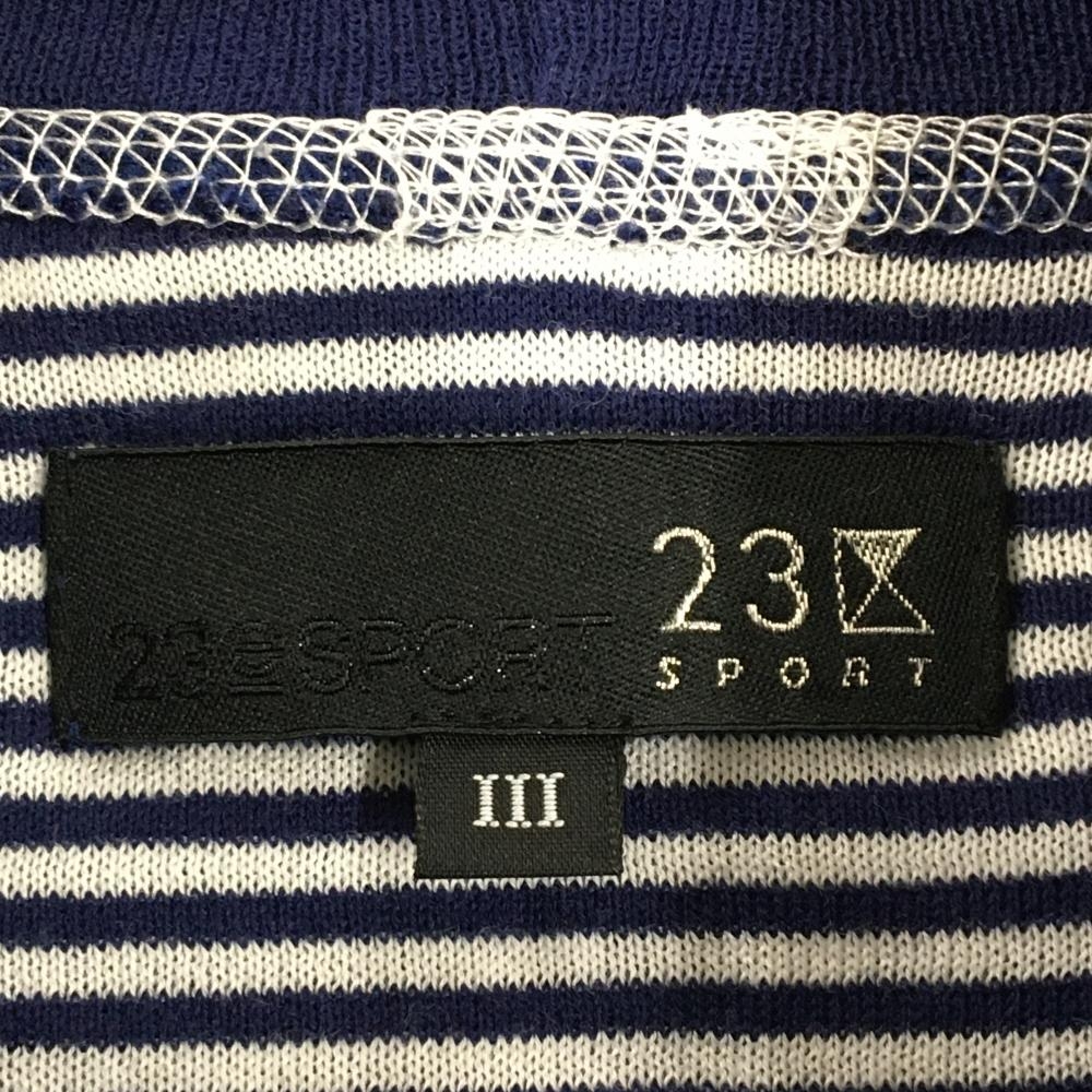 23区スポーツ 長袖ハイネックシャツ ネイビー×白 ボーダー ヨレ レディース III(XL) ゴルフウェア 23区