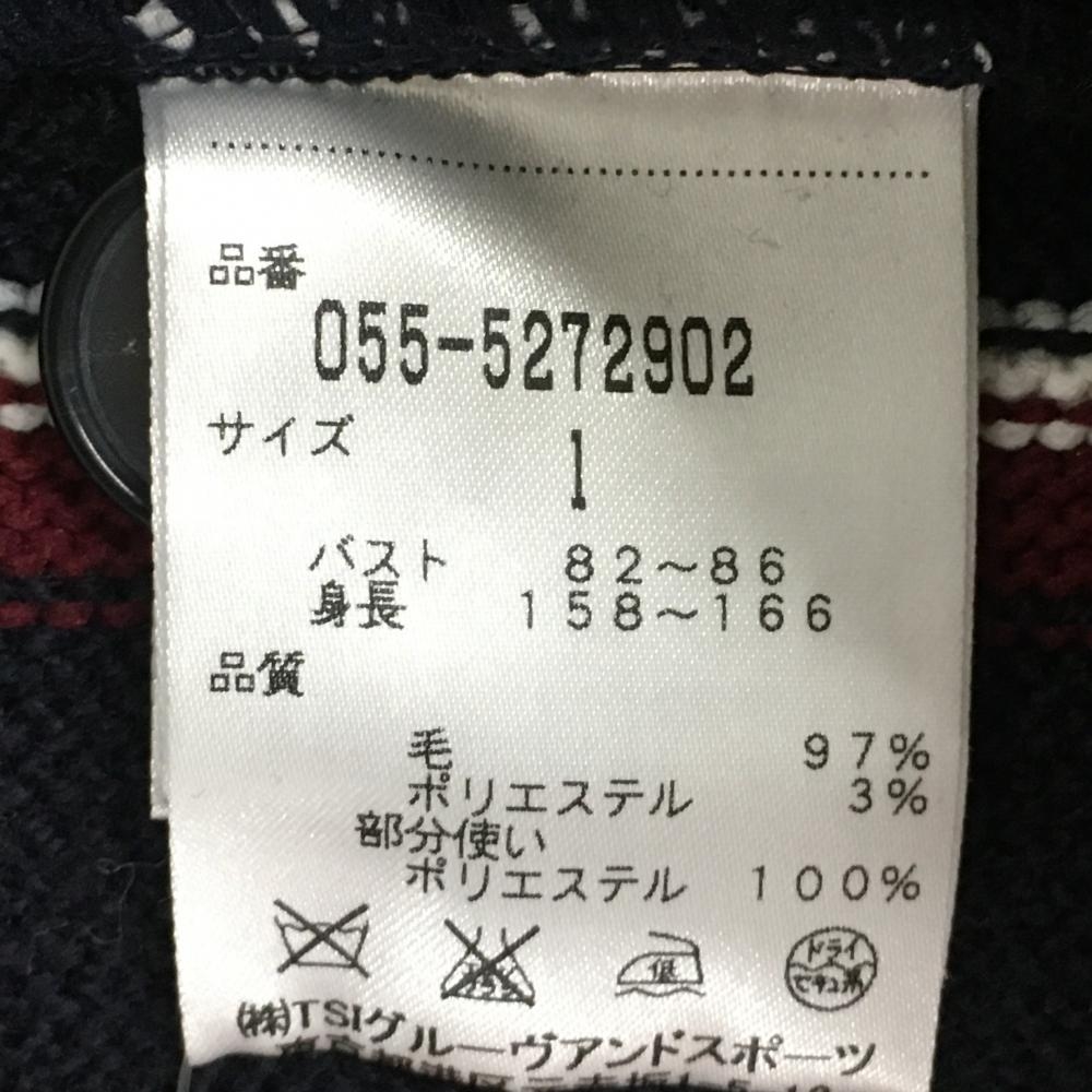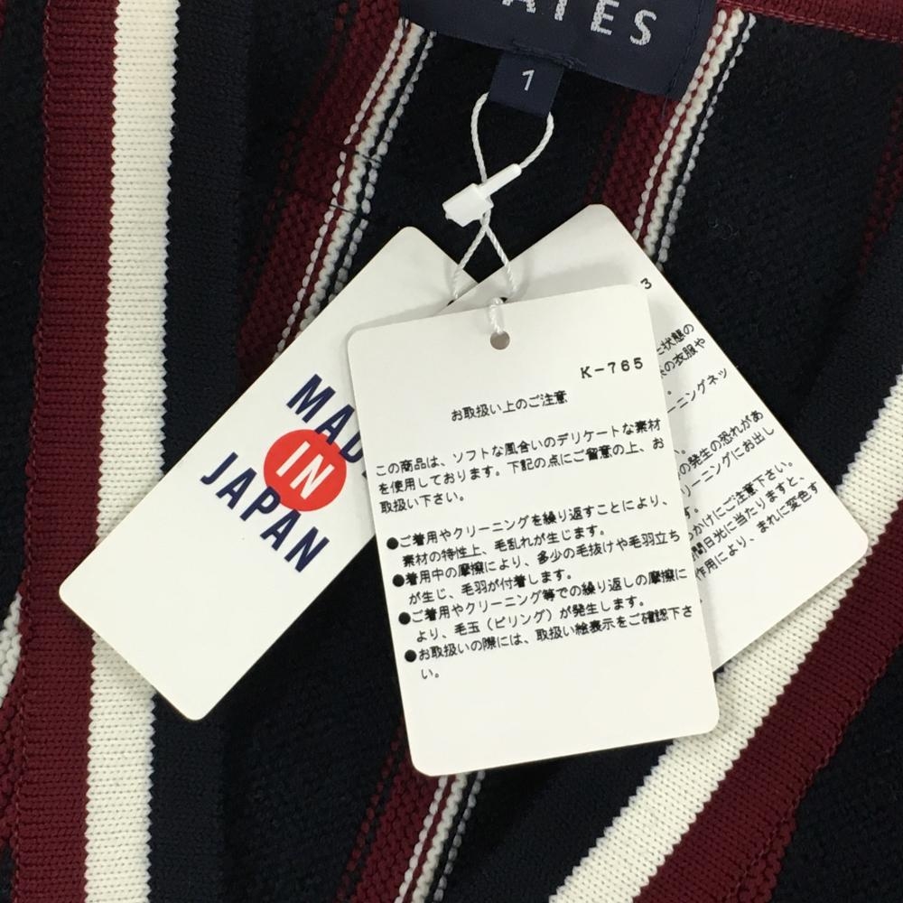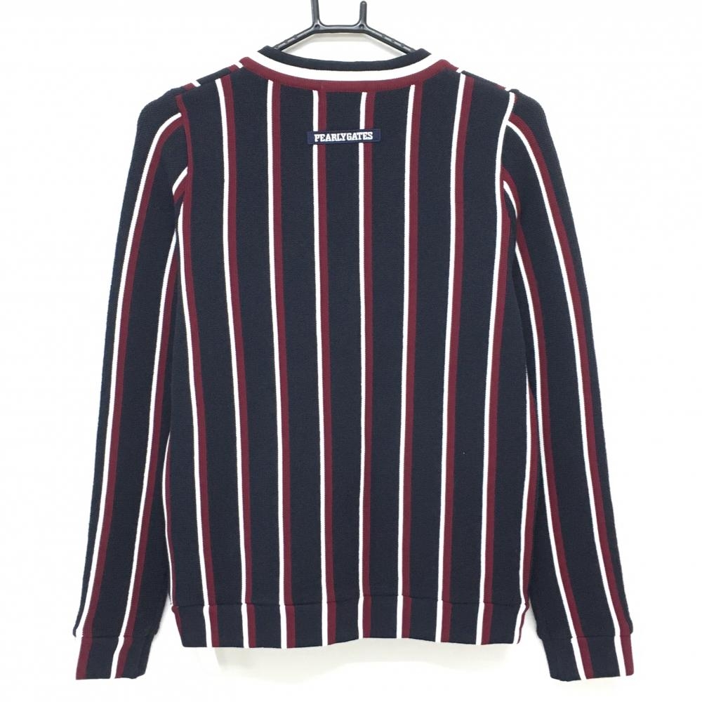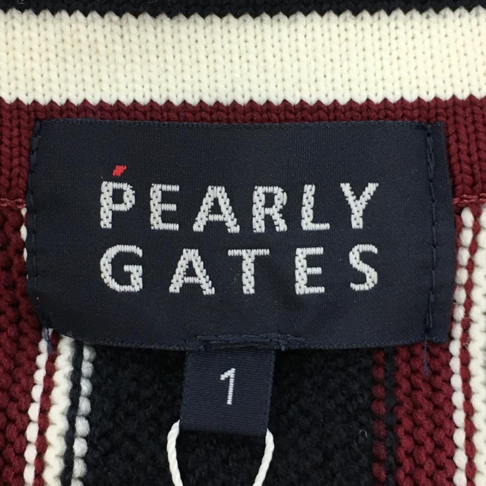 【新品】パーリーゲイツ ニットカーディガン ネイビー×ボルドー ストライプ ウール混 日本製 レディース 1(M) ゴルフウェア PEARLY GATES