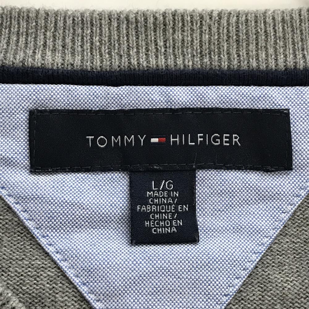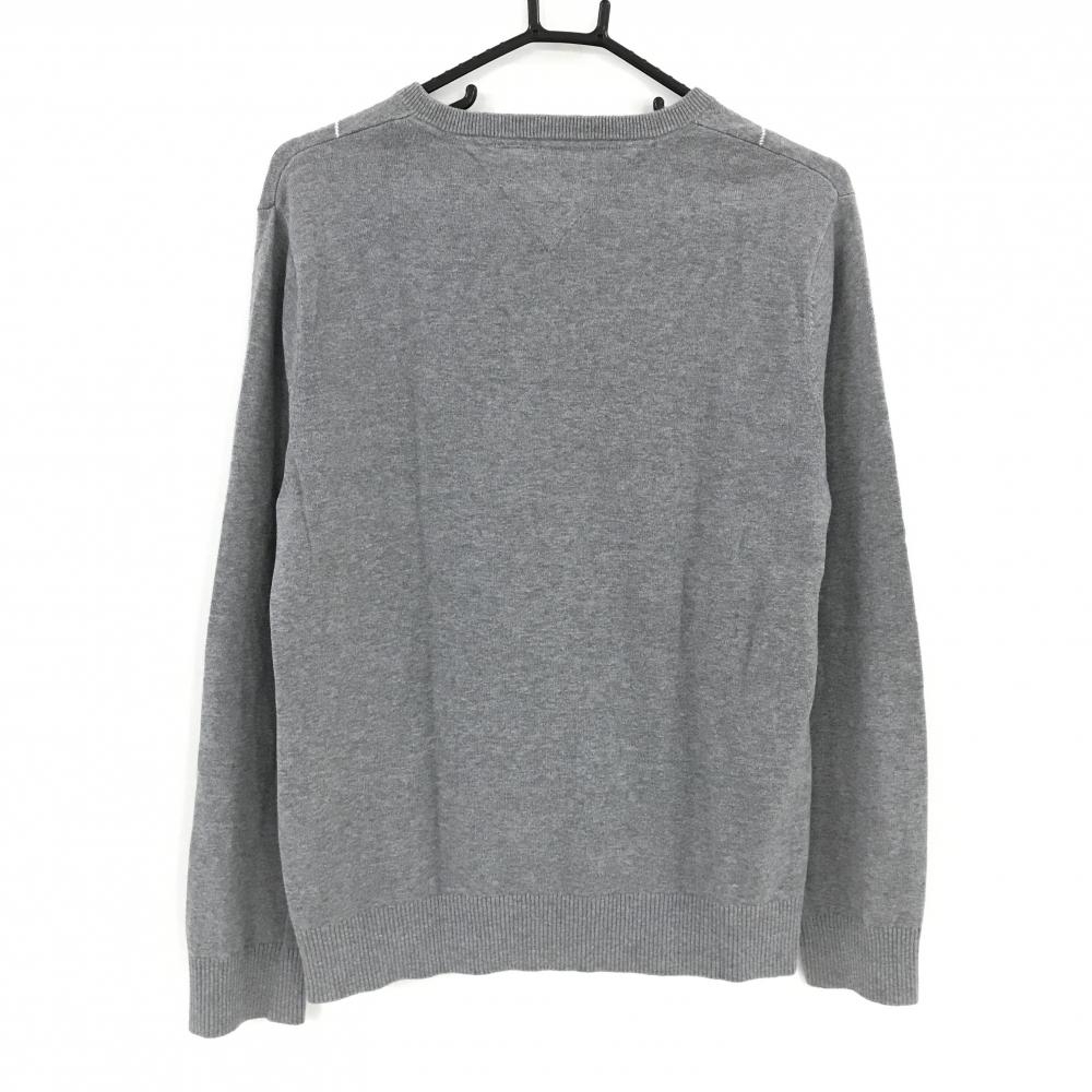 トミーヒルフィガー セーター グレー×ネイビー 前面アーガイル柄 コットン100% ニット メンズ L/G ゴルフウェア Tommy Hilfiger Golf