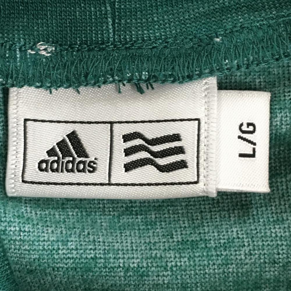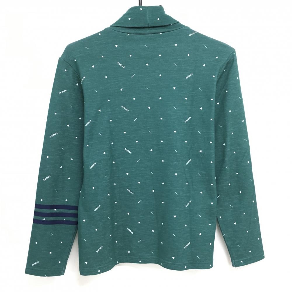 【超美品】アディダス 長袖ハイネックシャツ グリーン×白 総柄 微起毛 袖3ライン レディース L/G ゴルフウェア adidas