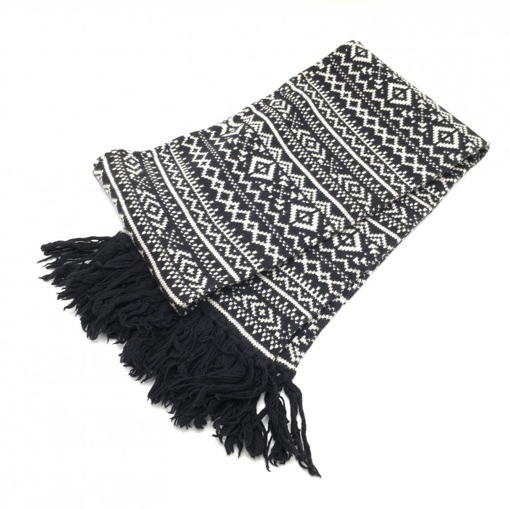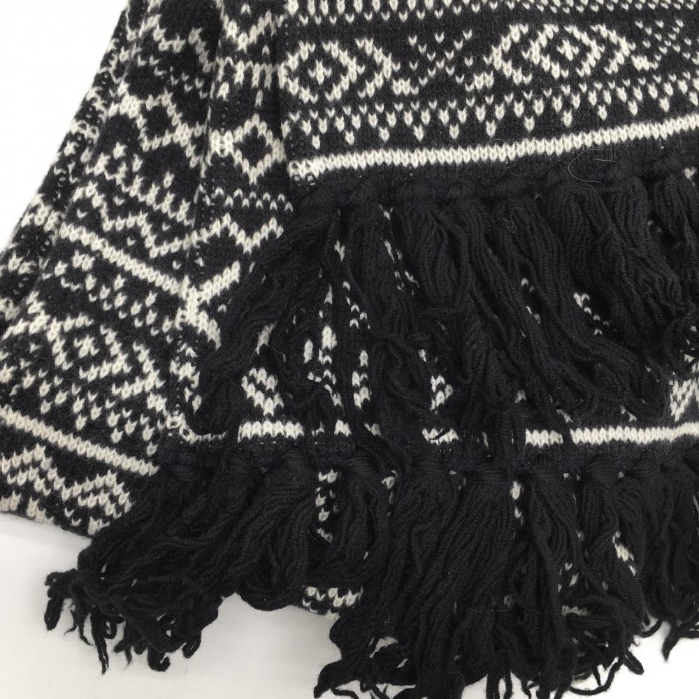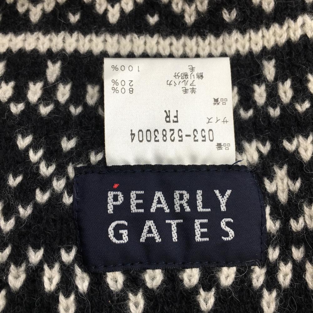 【美品】パーリーゲイツ マフラー 黒×白 総柄 羊毛混 FR ゴルフウェア PEARLY GATES