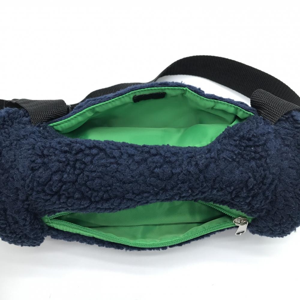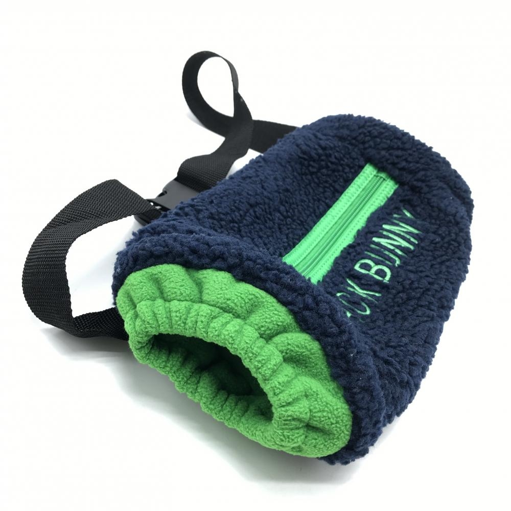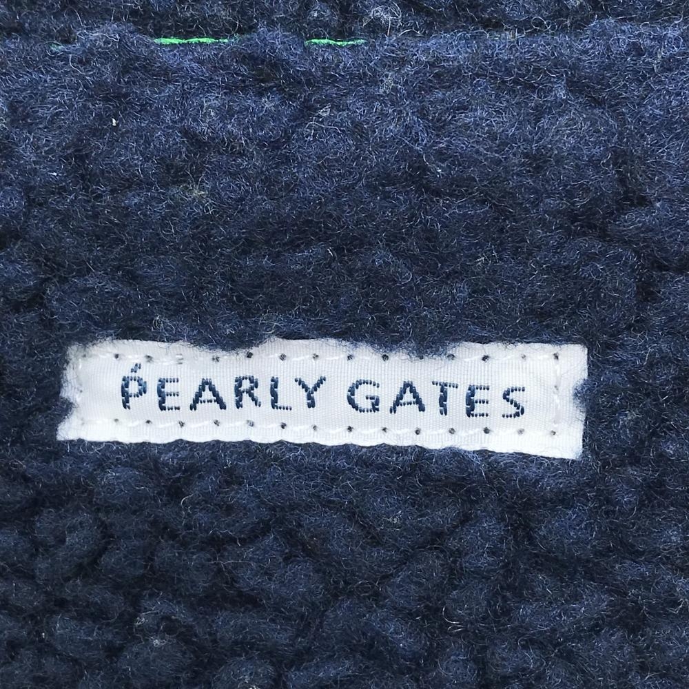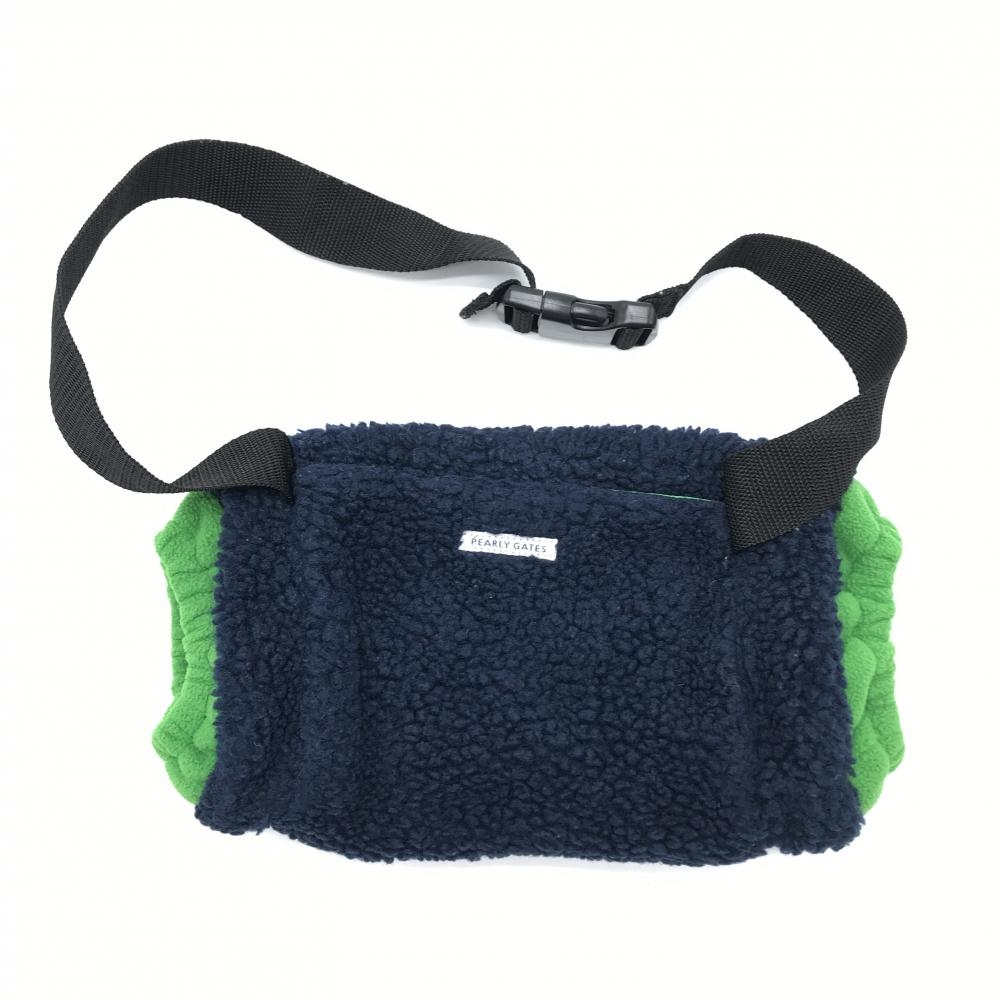 【美品】パーリーゲイツ ハンドウォーマー ネイビー×グリーン ボア×フリース 外ポケット付 ゴルフウェア PEARLY GATES