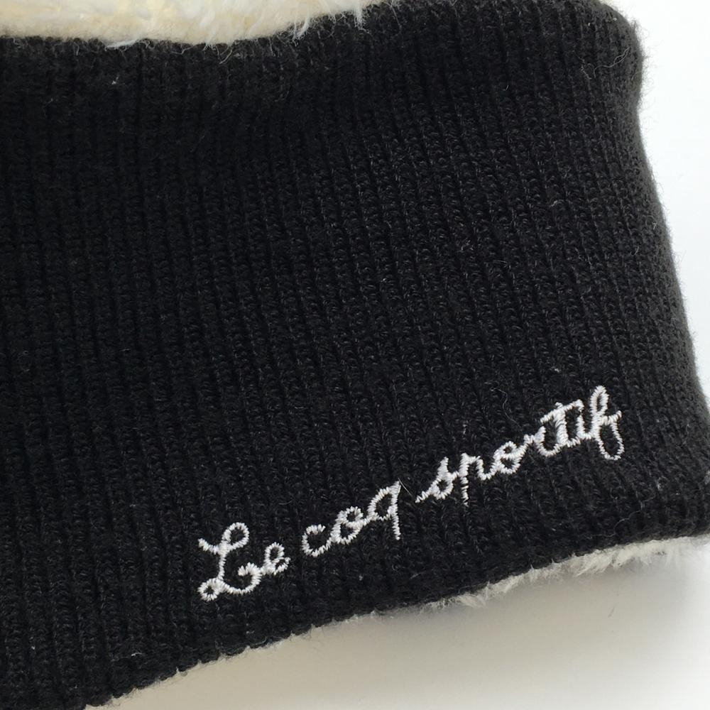 ルコック ニットネックウォーマー 黒×白 裏ボア ロゴ刺しゅう FREE ゴルフウェア le coq sportif