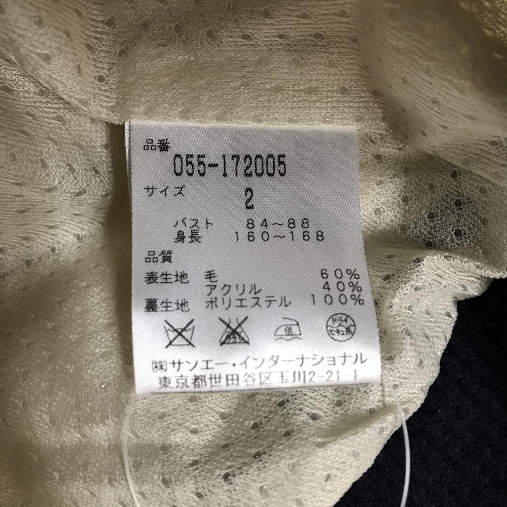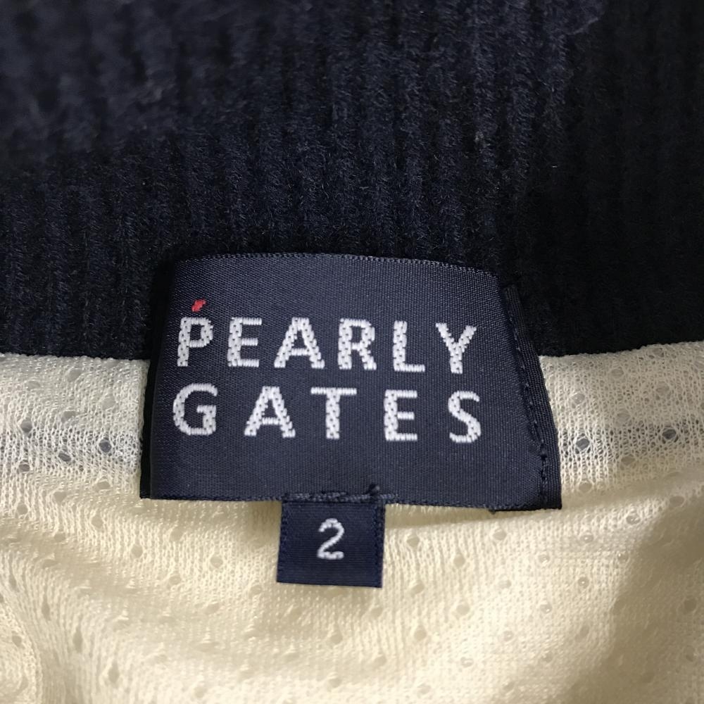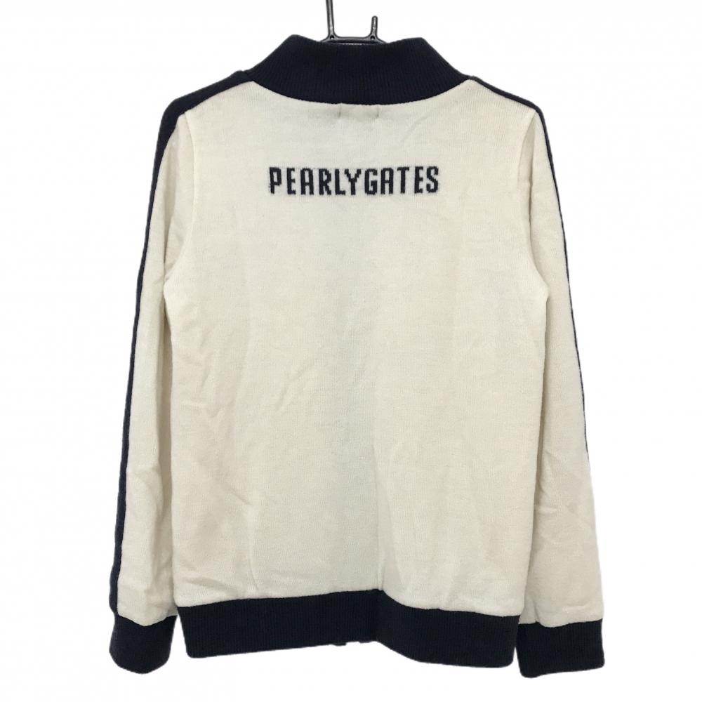 パーリーゲイツ ニットジャケット アイボリー×ネイビー ウール混 裏地付 レディース 2(L) ゴルフウェア PEARLY GATES