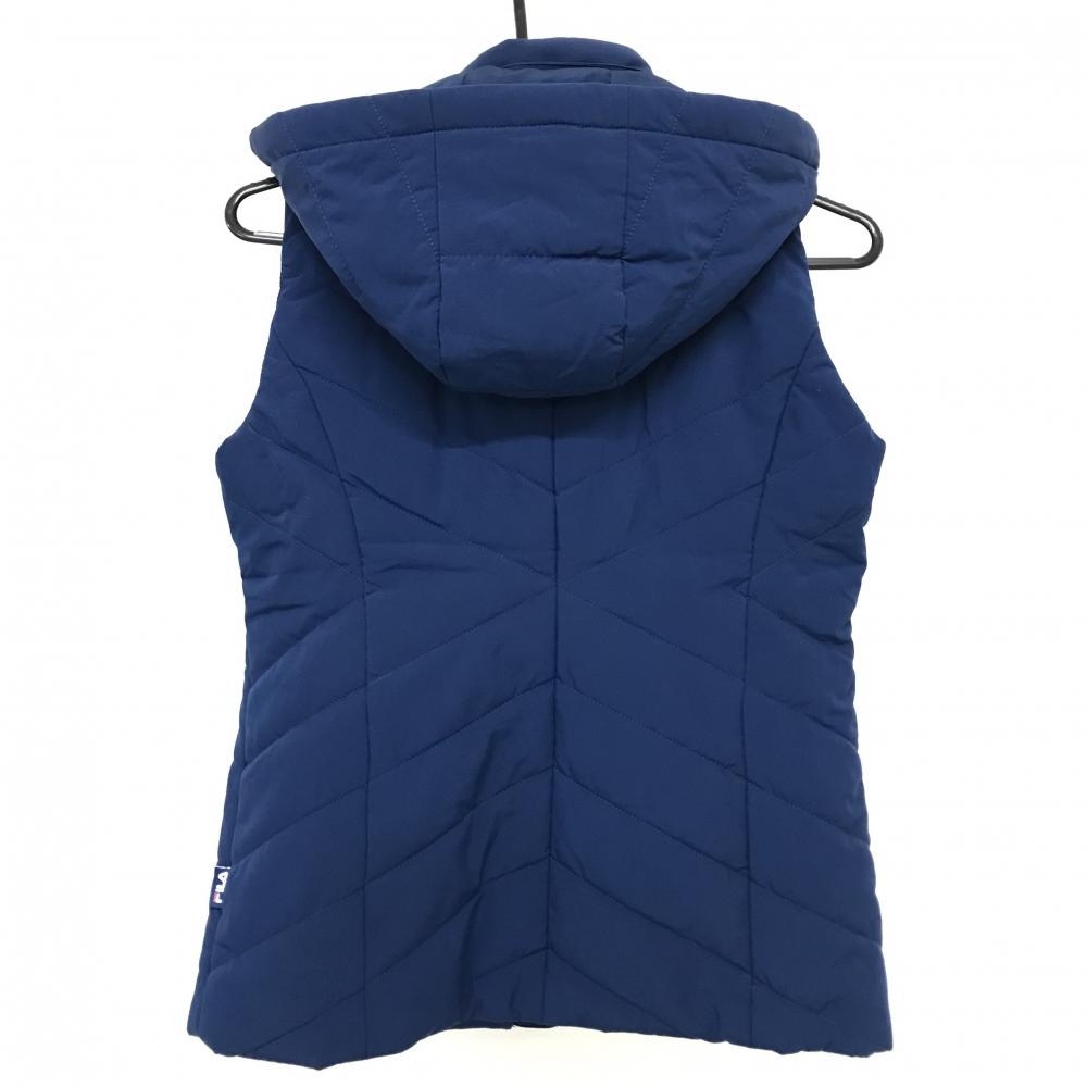 【美品】フィラゴルフ 2WAY中綿ベスト ネイビー フード着脱可 レディース M ゴルフウェア FILA GOLF