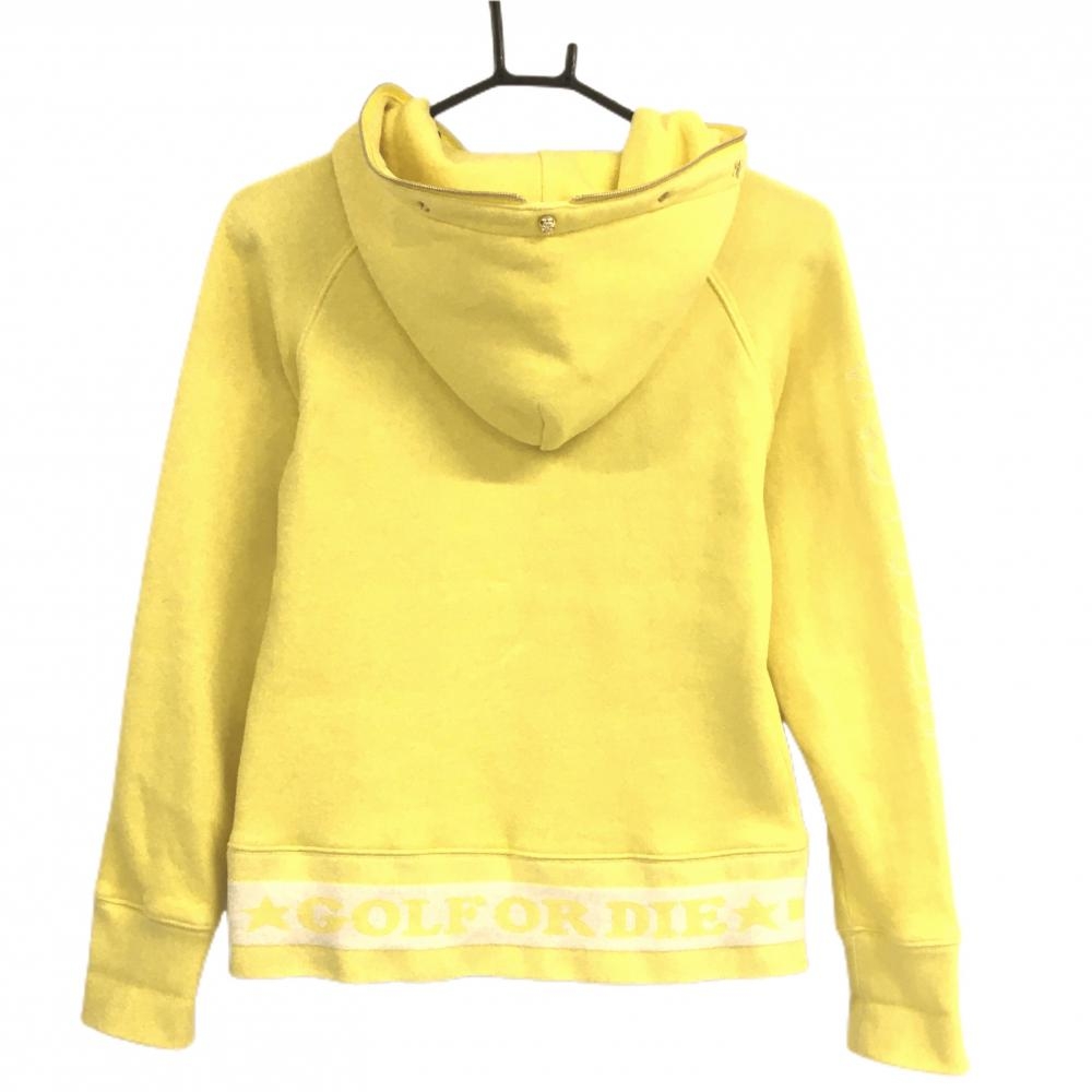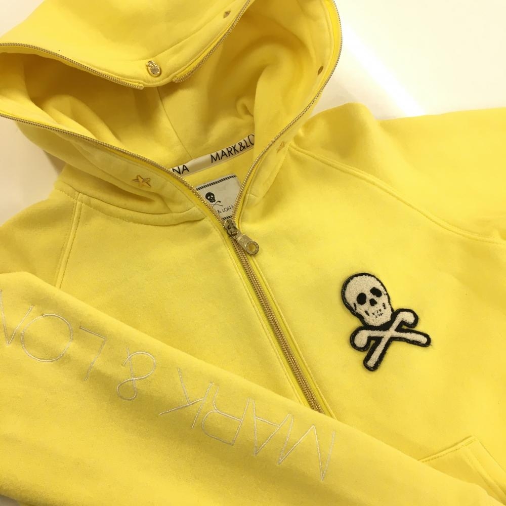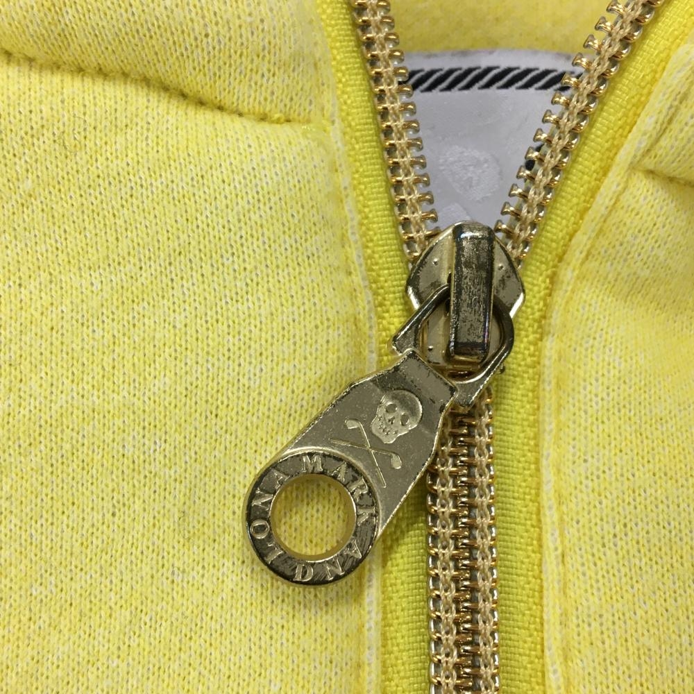 マークアンドロナ ジップパーカー イエロー×白 フード部分スタッズ 裏起毛 レディース M ゴルフウェア MARK&LONA