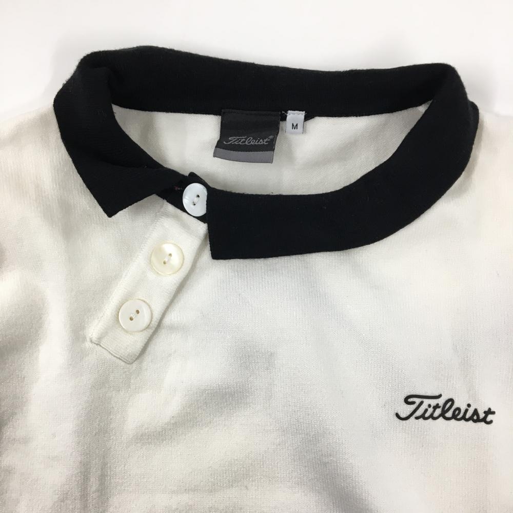 【美品】タイトリスト 襟付きセーター 白×黒 ネックボタン レディース M ゴルフウェア TITLEIST