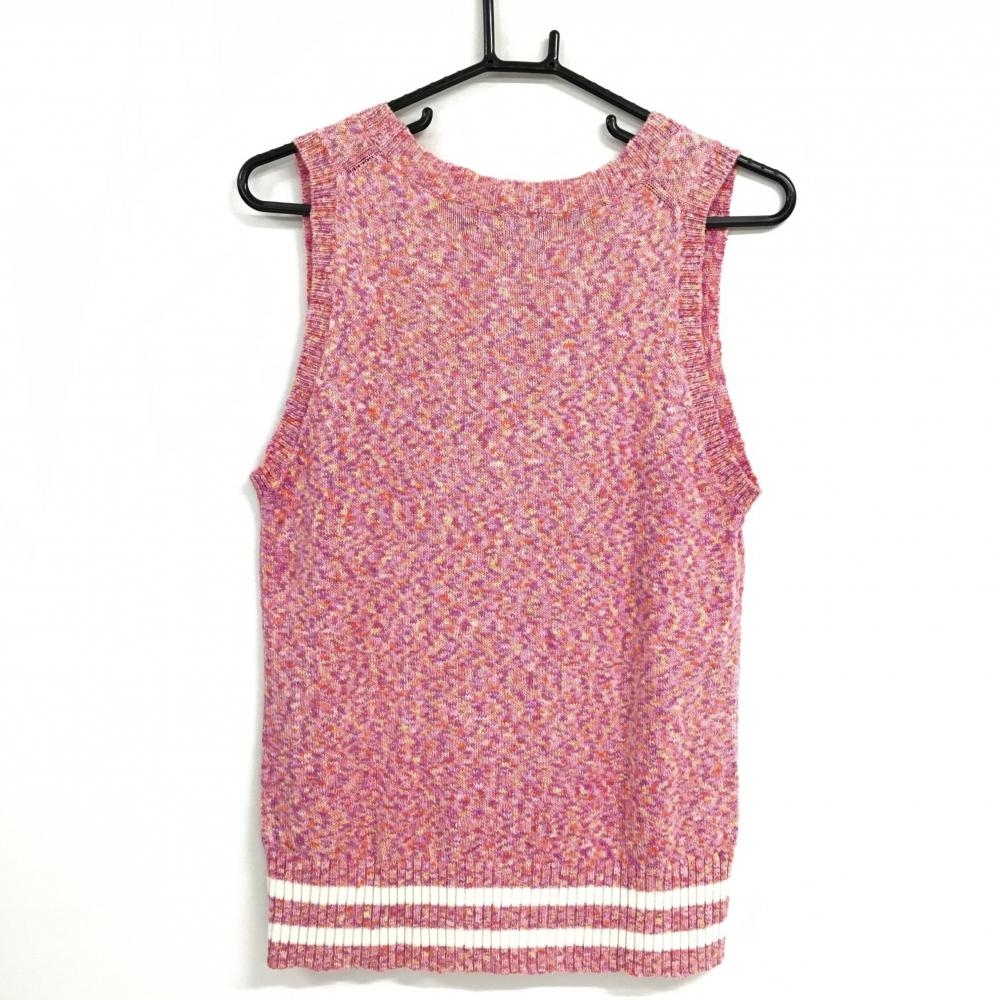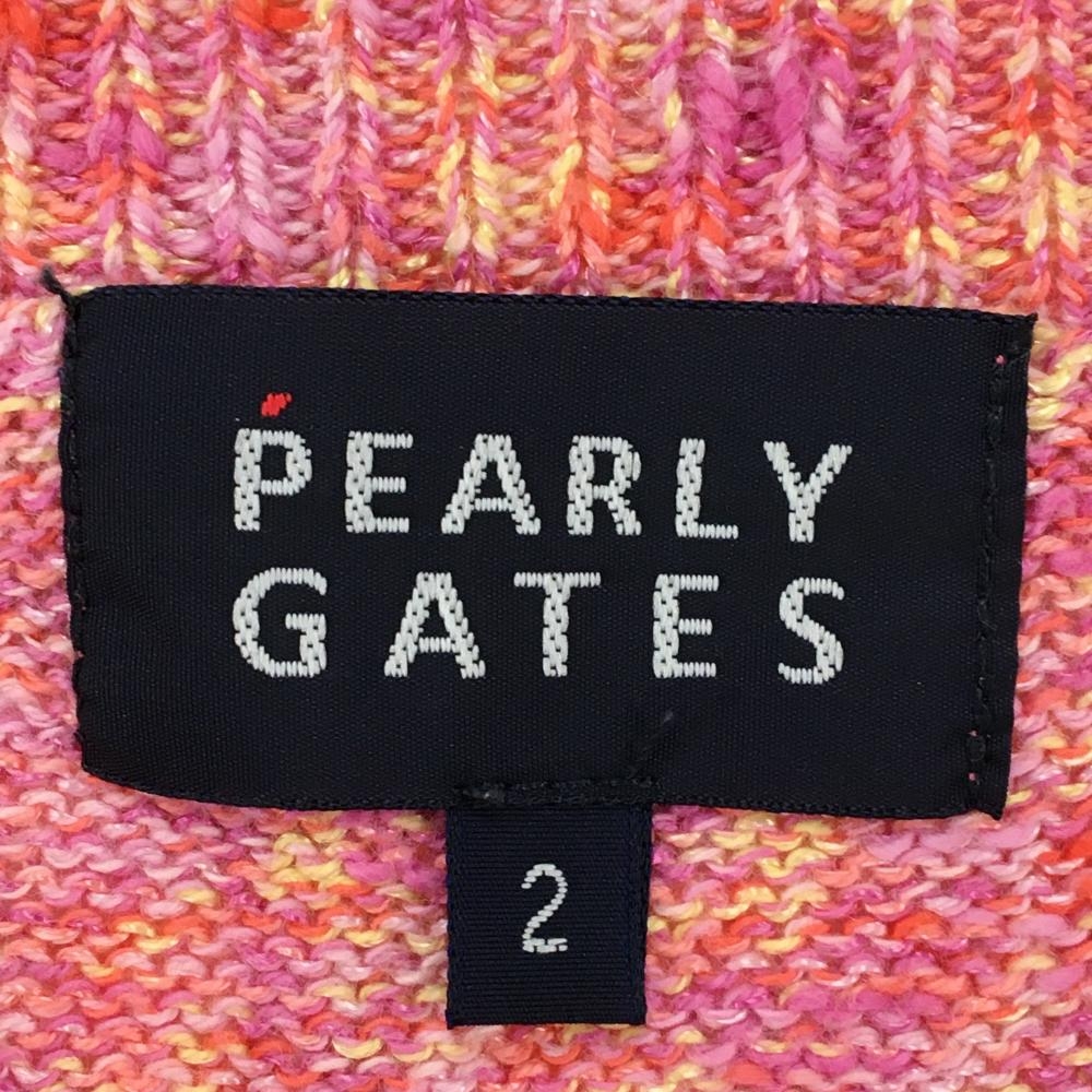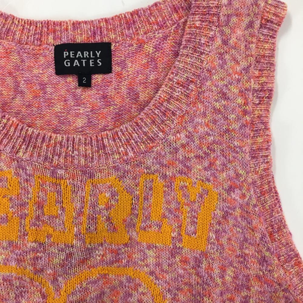 【美品】パーリーゲイツ ニットベスト パープル系×オレンジ ビッグロゴ コットン混 レディース 2(L) ゴルフウェア PEARLY GATES