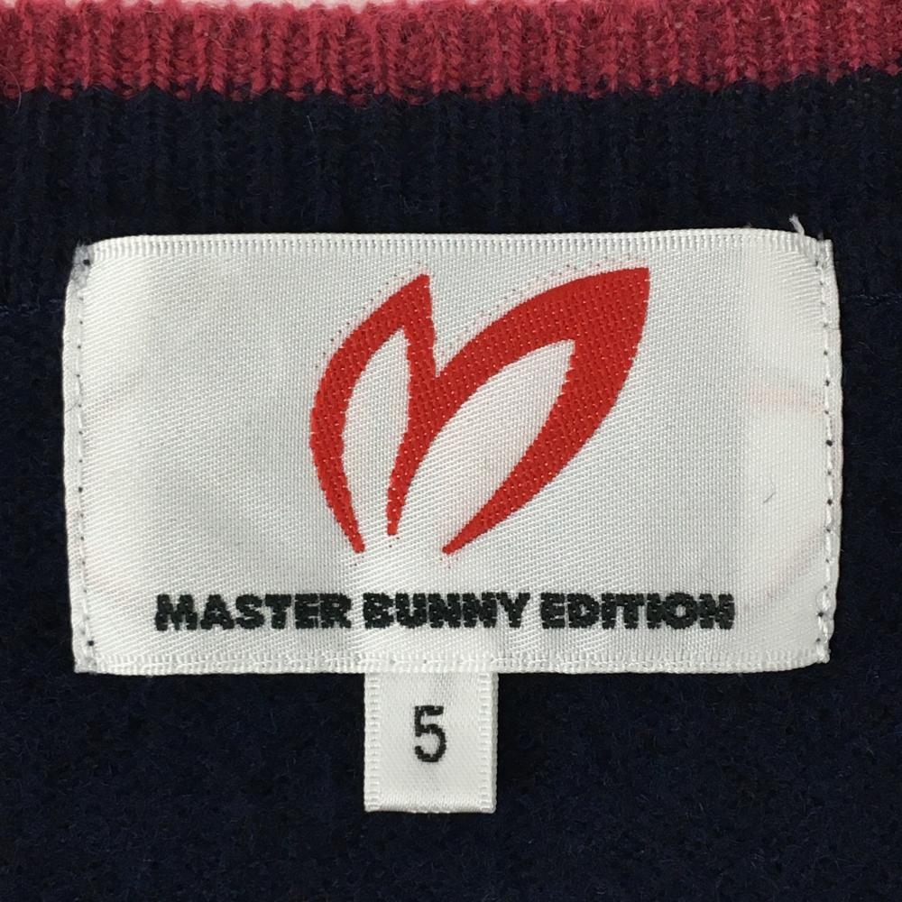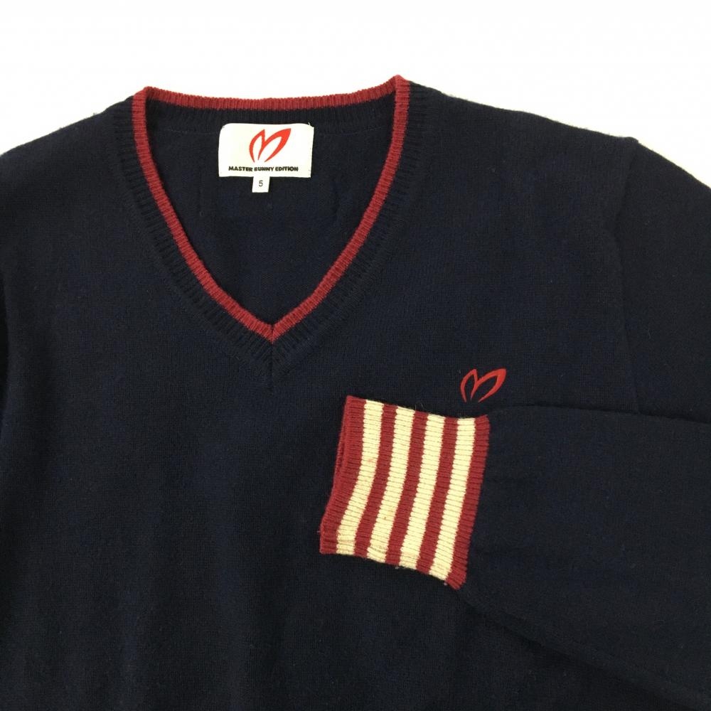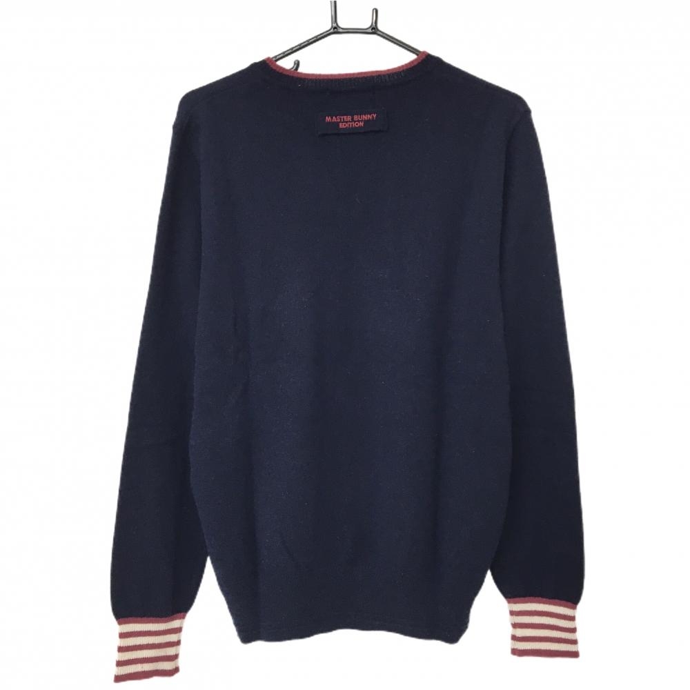 マスターバニー セーター ネイビー×ボルドー ニット カシミヤ・羊毛混 Vネック メンズ 5(L) ゴルフウェア MASTER BUNNY EDITION