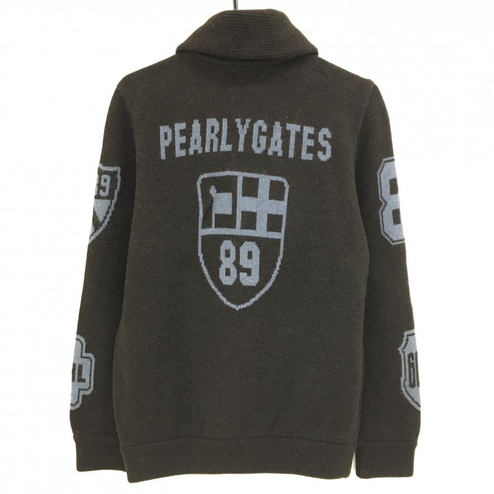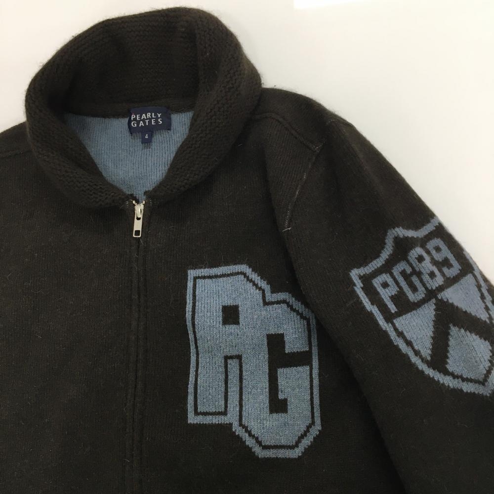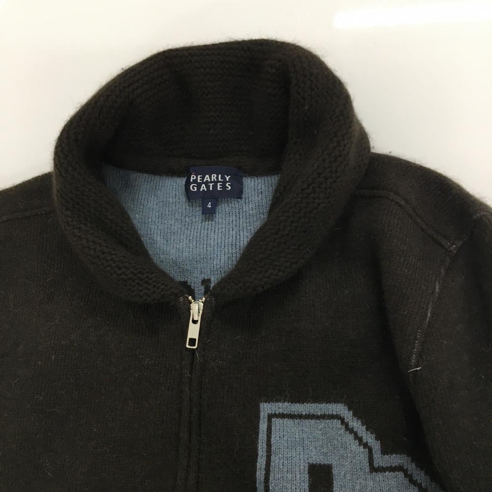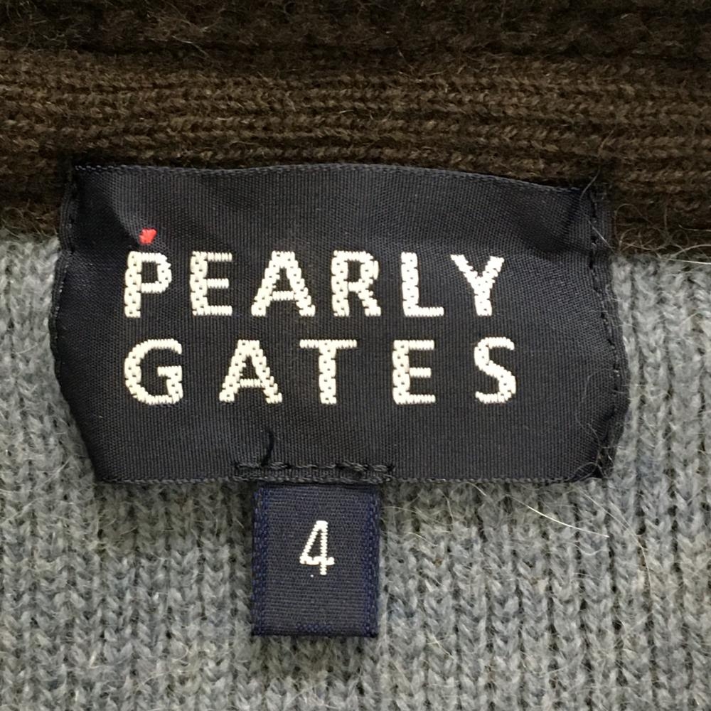 【美品】パーリーゲイツ ニットジャケット ブラウン×グレー 後ビッグロゴ メンズ 4(M) ゴルフウェア PEARLY GATES
