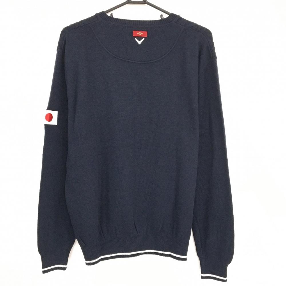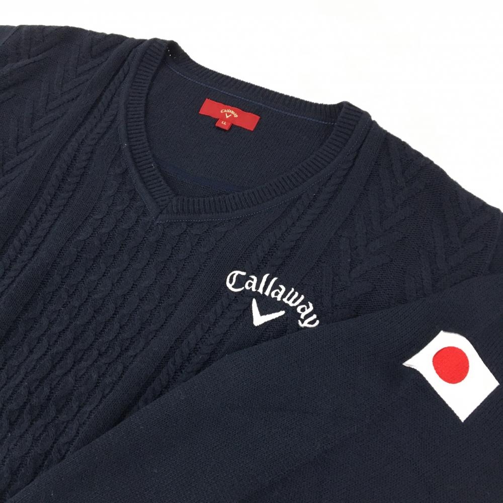 【超美品】キャロウェイ レッドレーベル セーター ネイビー ケーブル編み 袖に日本国旗 ニット メンズ LL ゴルフウェア Callaway
