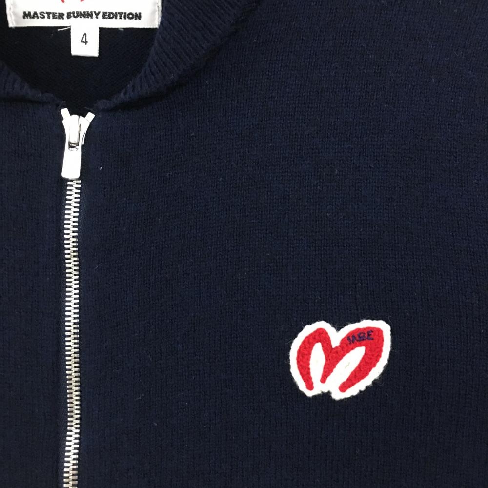 【超美品】マスターバニー ニットジャケット ネイビー ウール・カシミヤ混 ワッペン メンズ 4(M) ゴルフウェア MASTER BUNNY EDITION