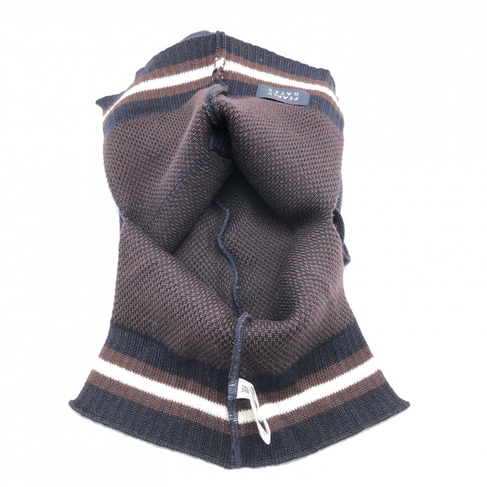 【超美品】パーリーゲイツ フード付ネックウォーマー ネイビー×ブラウン ウール混 FR ゴルフウェア 2023年モデル PEARLY GATES