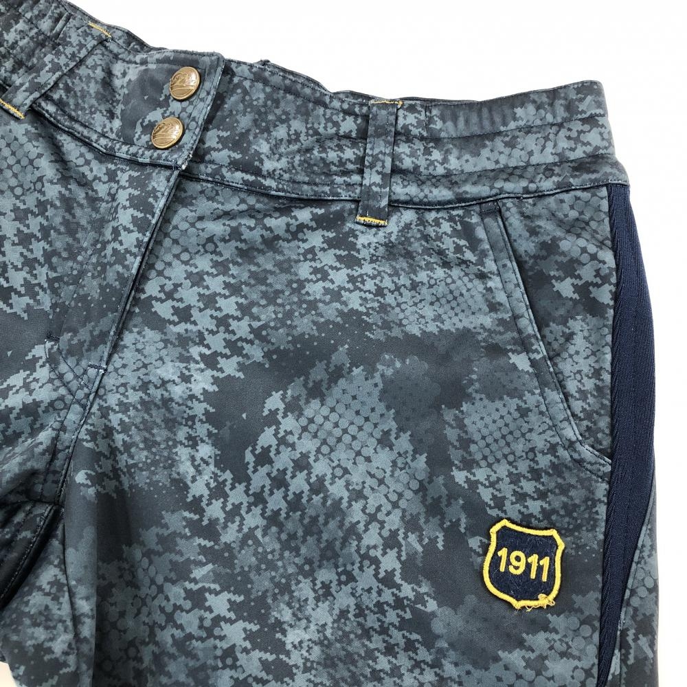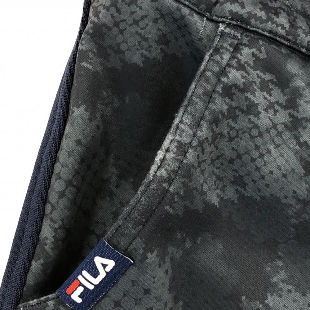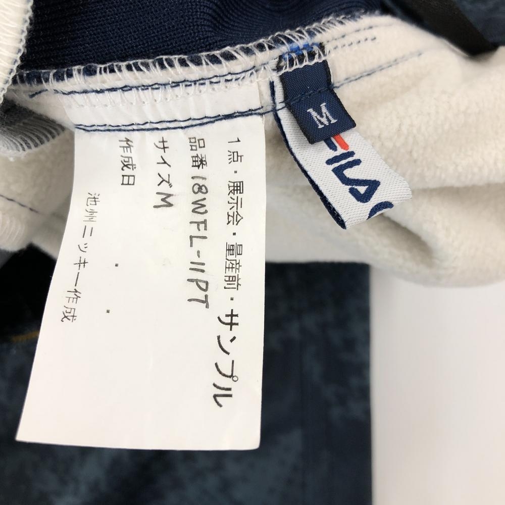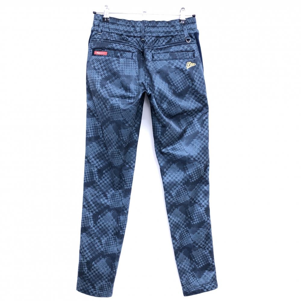 【美品】フィラゴルフ パンツ ネイビー 千鳥格子 裏起毛 ウエストゴム&調節紐 レディース M ゴルフウェア FILA GOLF