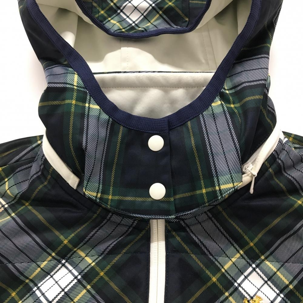 アドミラル 2WAYアウターベスト ネイビー×グリーン チェック 裏起毛 フード着脱可 レディース M ゴルフウェア Admiral