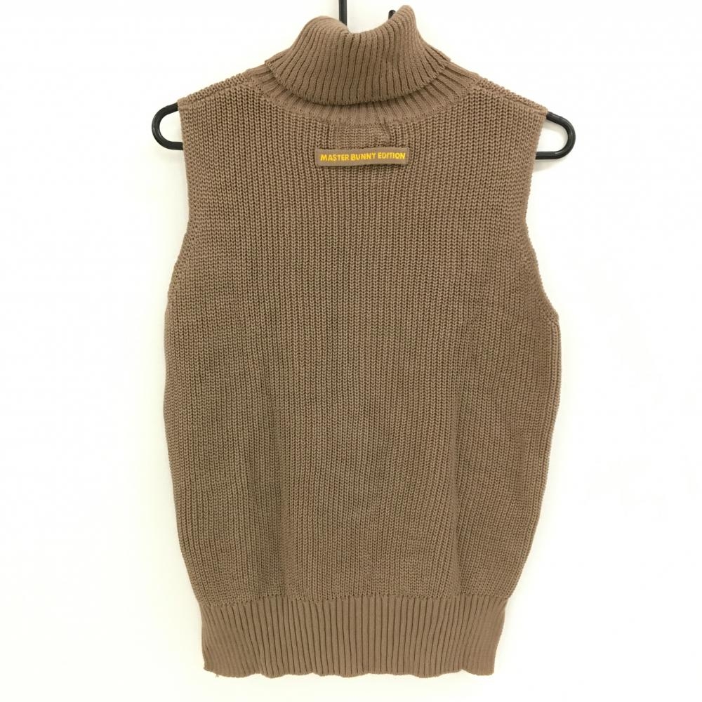【超美品】マスターバニー ニットベスト ブラウン タートルネック コットン100% レディース 1(M) ゴルフウェア MASTER BUNNY EDITION