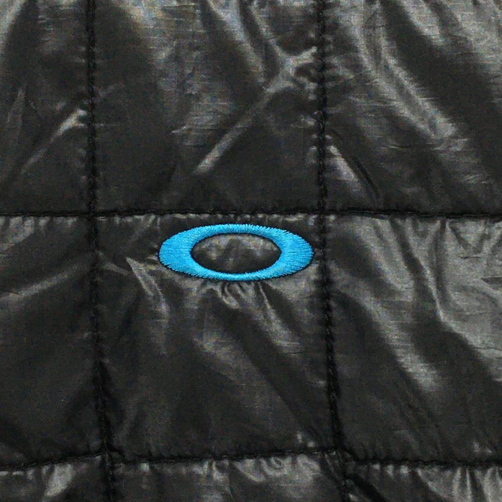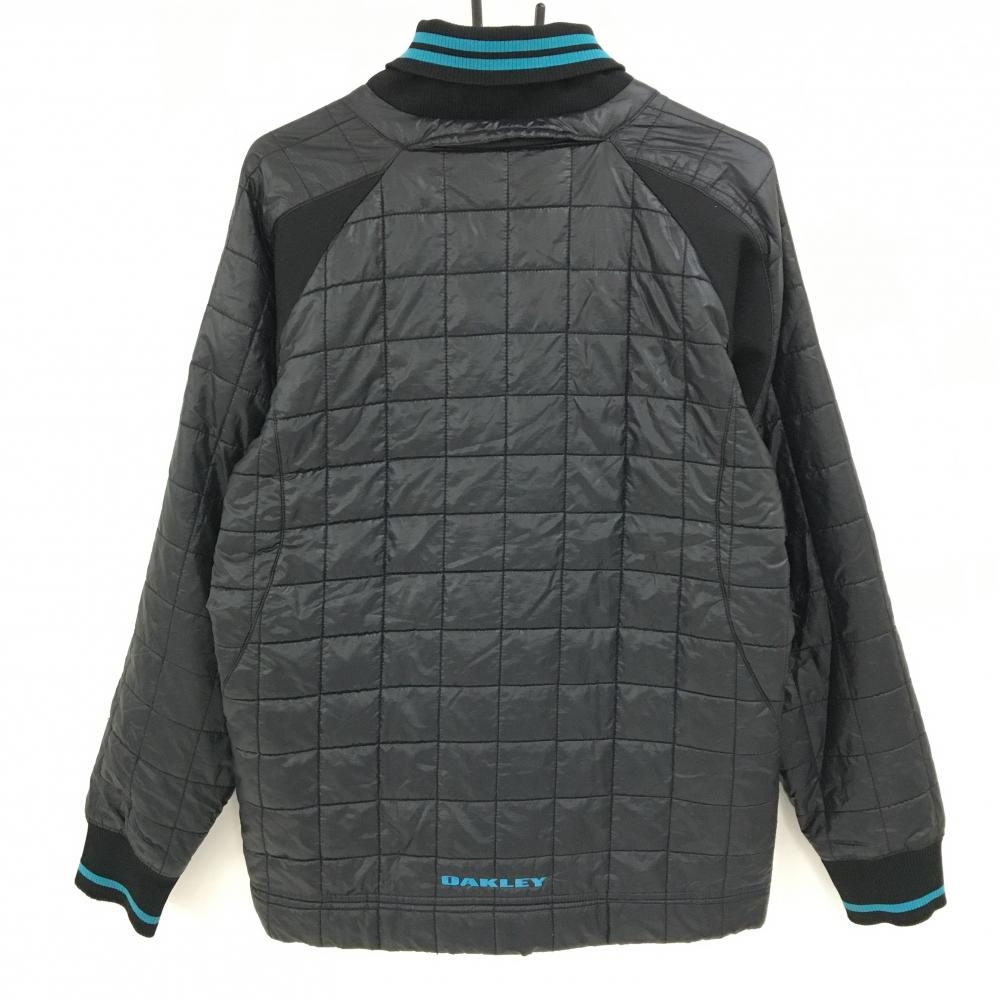 【美品】オークリー 中綿ブルゾン 黒×ブルー キルティング ネック2ライン メンズ L ゴルフウェア Oakley