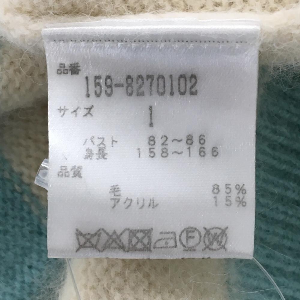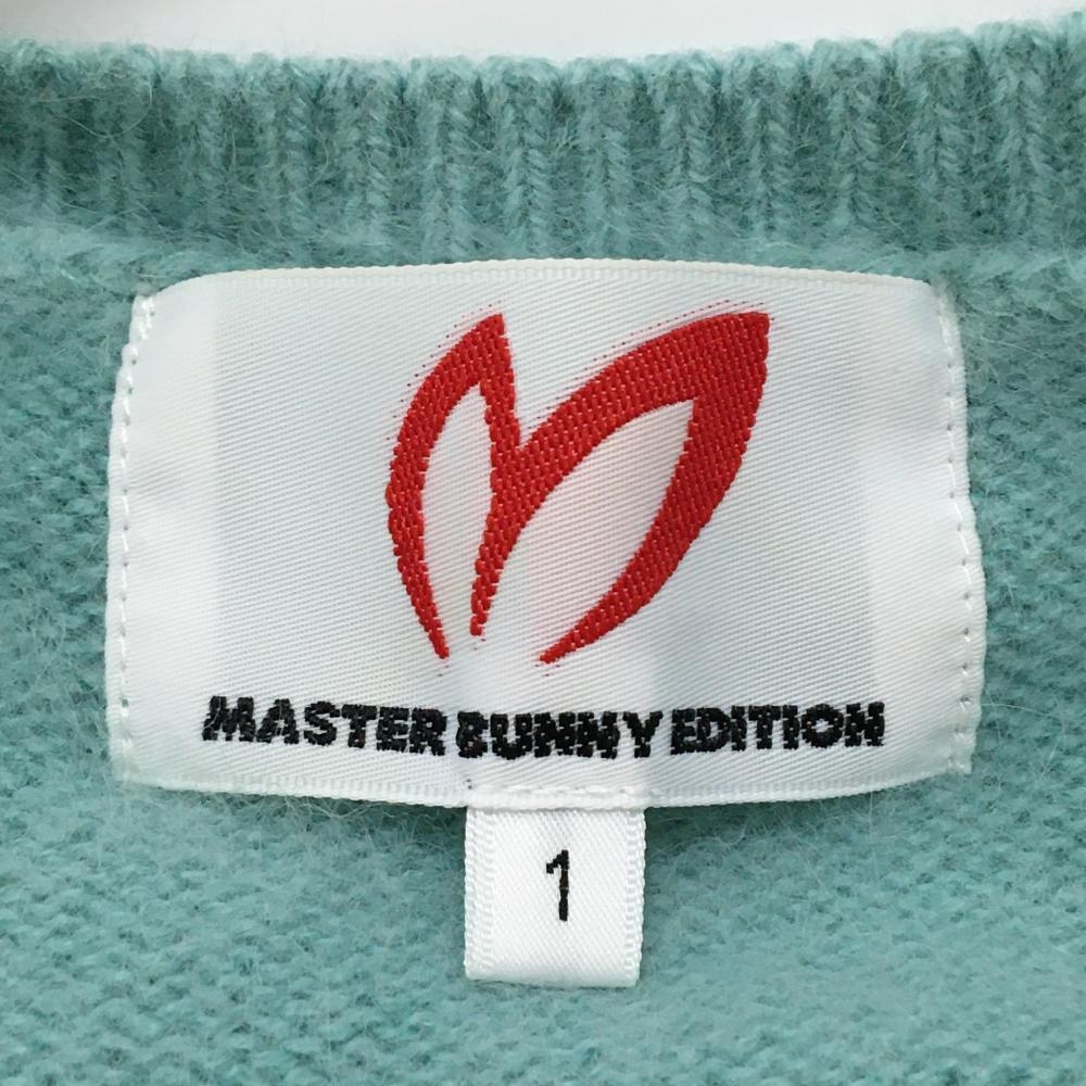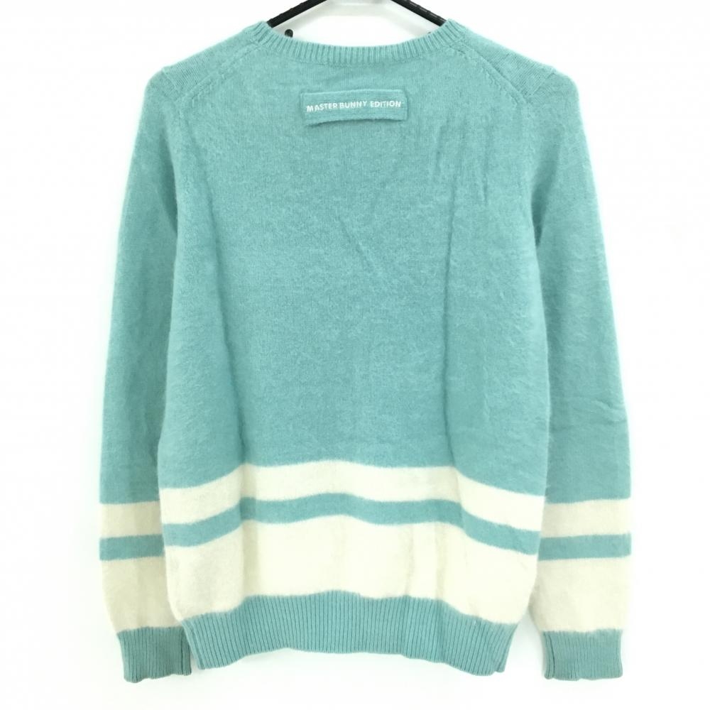 【美品】マスターバニー セーター ライトブルー×白 ウール混 ニット レディース 1(M) ゴルフウェア MASTER BUNNY EDITION