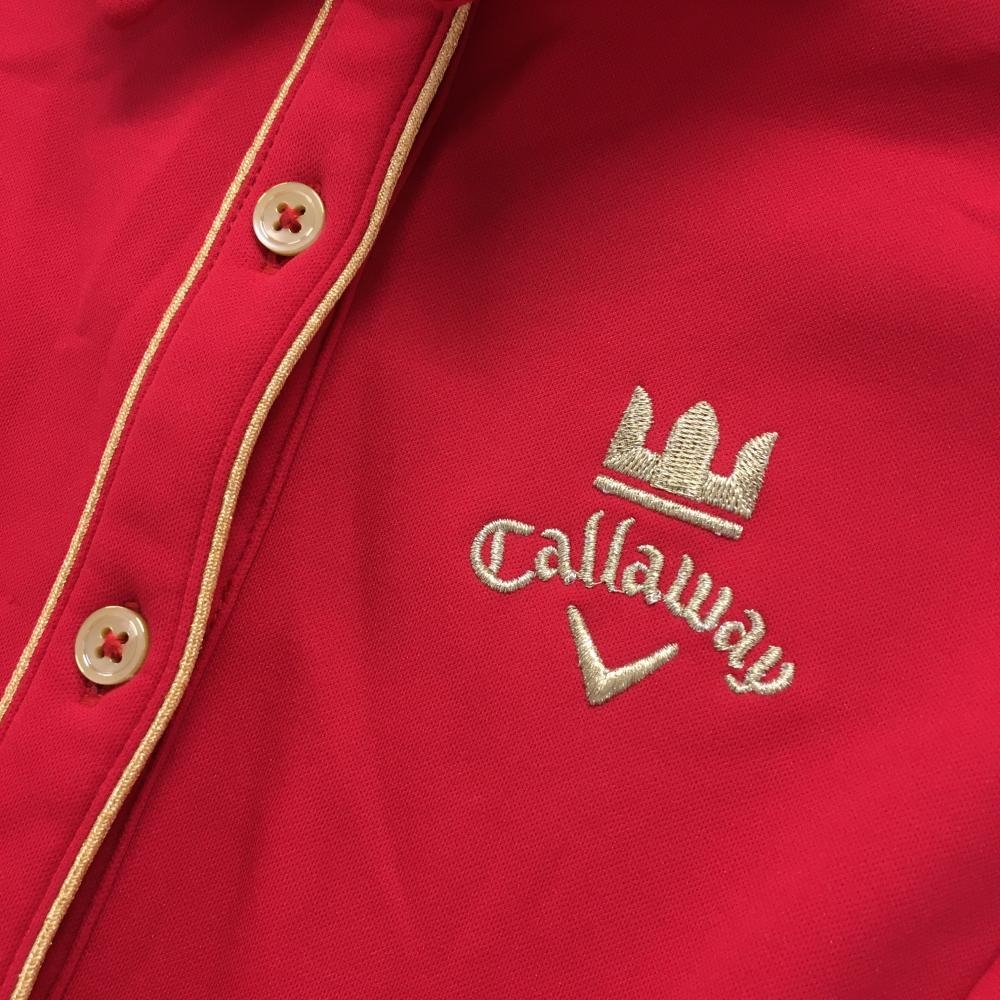 キャロウェイ 長袖ポロシャツ レッド ロゴゴールド レディース L ゴルフウェア Callaway