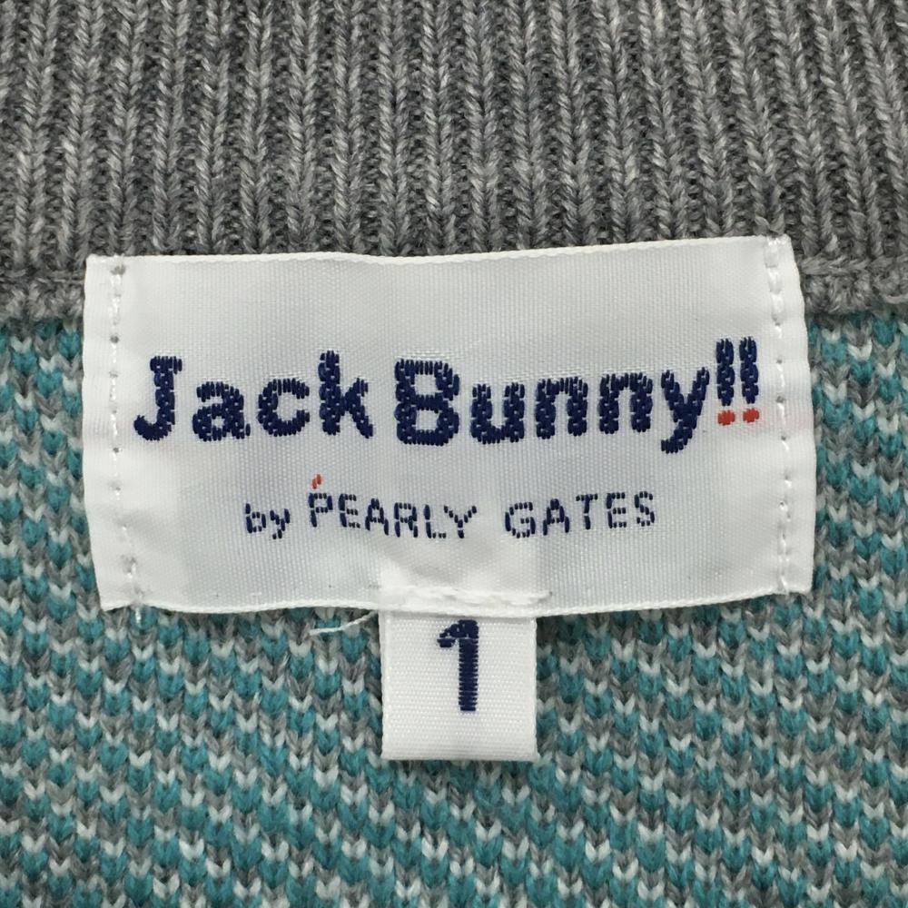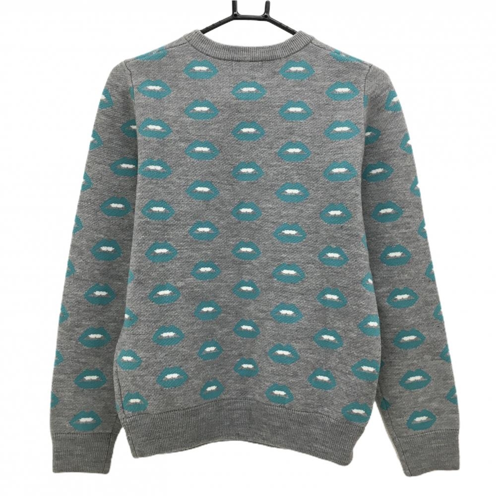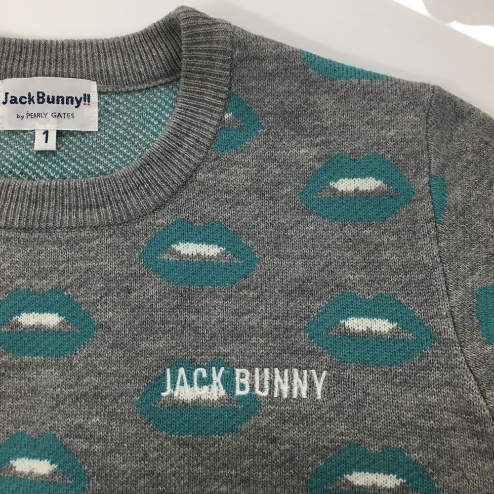 【超美品】ジャックバニー セーター グレー×ライトブルー 唇柄 ニット ウール混 レディース 1(M) ゴルフウェア Jack Bunny