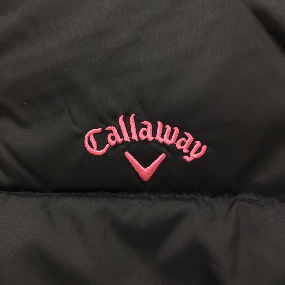 【美品】キャロウェイ ダウンベスト 黒×ピンク ロゴ刺しゅう ダブルジップ ダウン90% レディース M ゴルフウェア Callaway