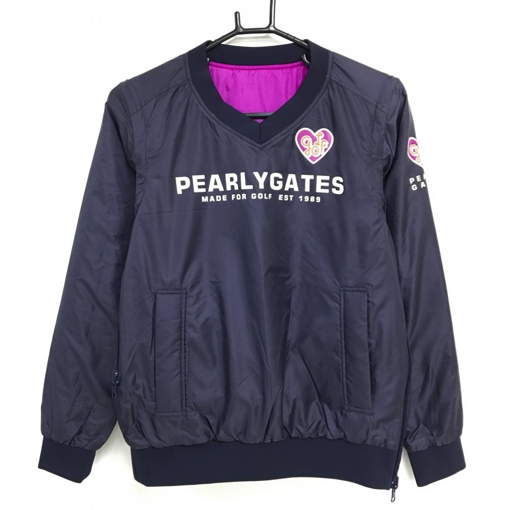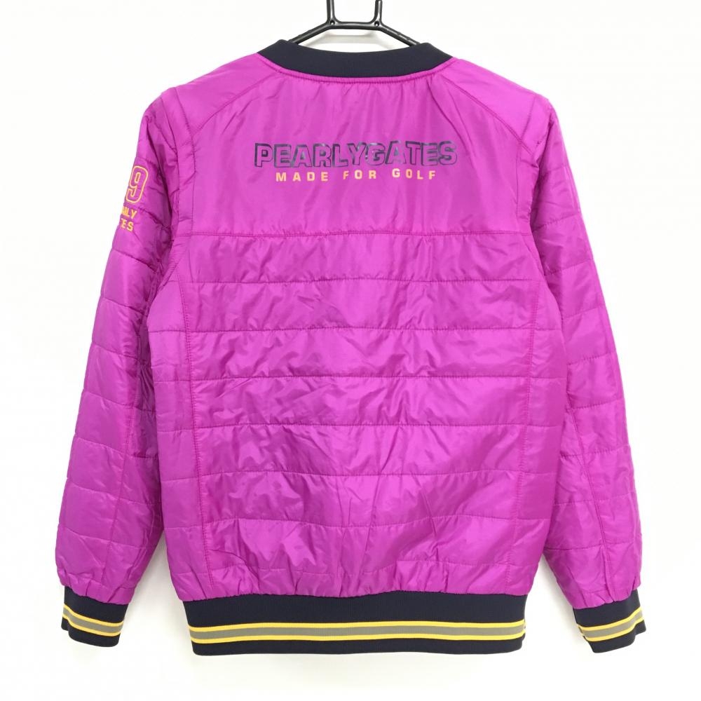 【美品】パーリーゲイツ 2WAY中綿リバーシブルスニード ライトパープル 片面ネイビー ブルゾン レディース 0(S) ゴルフウェア PEARLY GATES