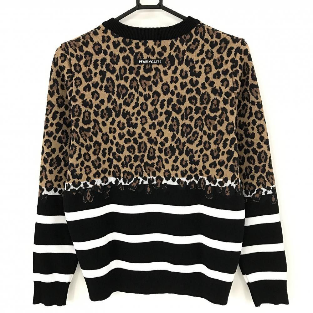 【新品】パーリーゲイツ セーター 黒×ブラウン 一部レオパード ニット レディース 2(L) ゴルフウェア PEARLY GATES