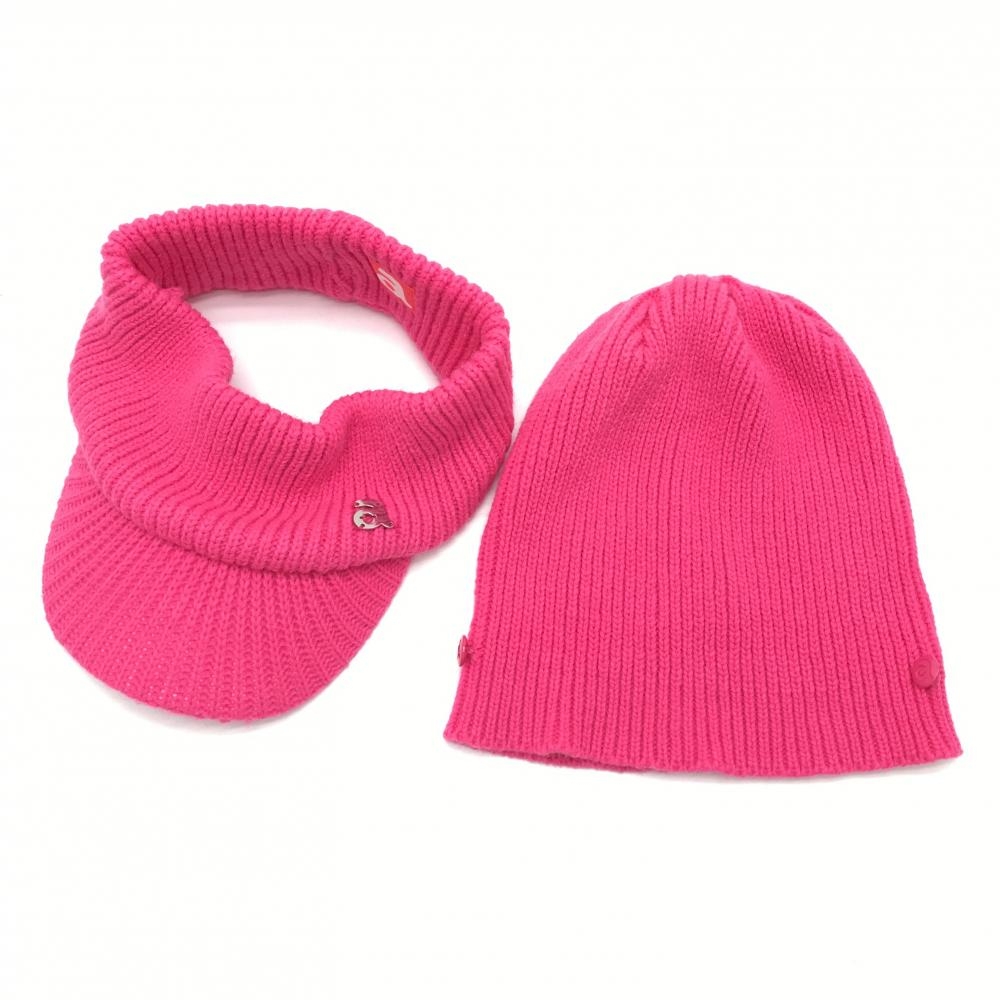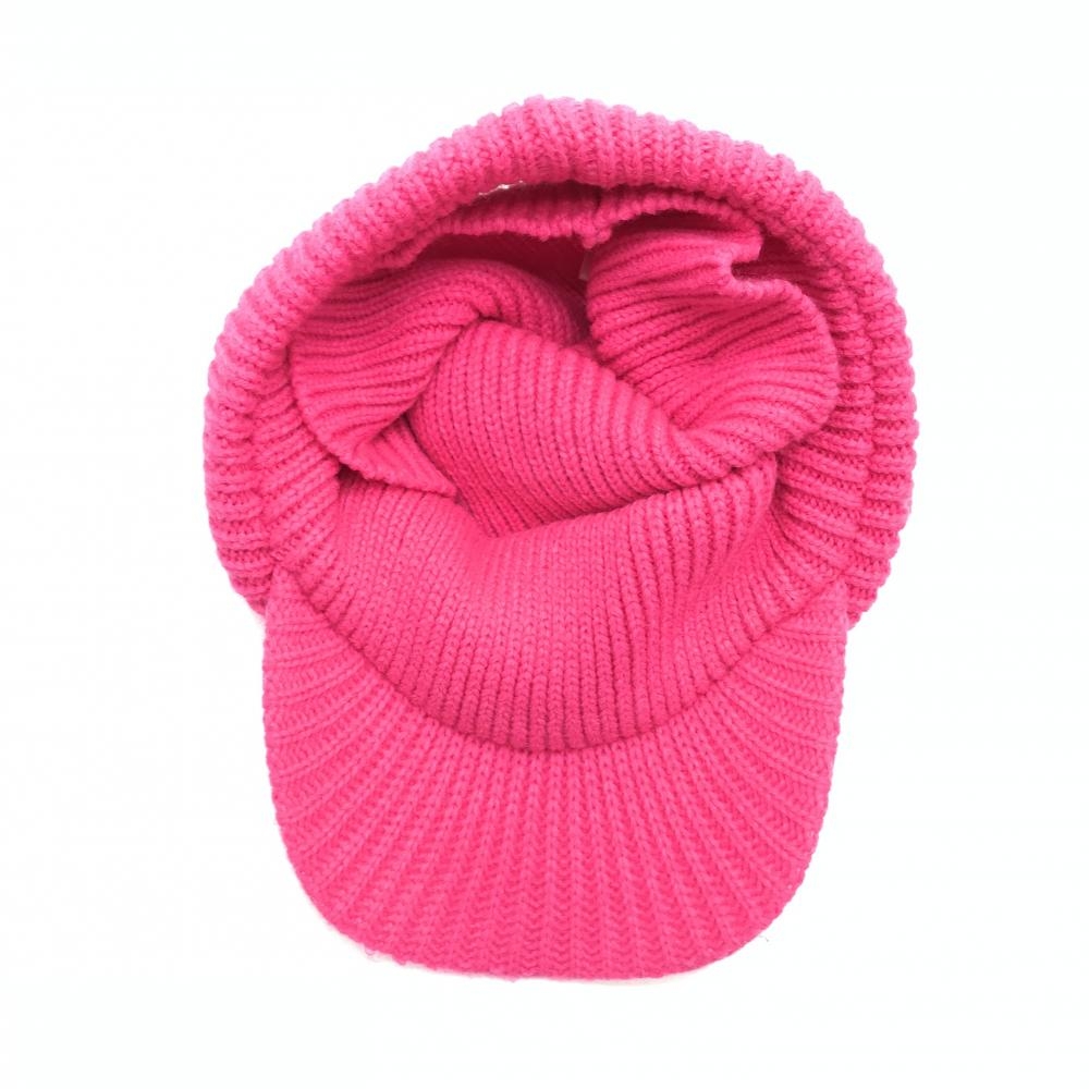 【美品】アルチビオ 3WAYつば付きニット帽 ピンク ウール混 ニットサンバイザー ゴルフウェア archivio