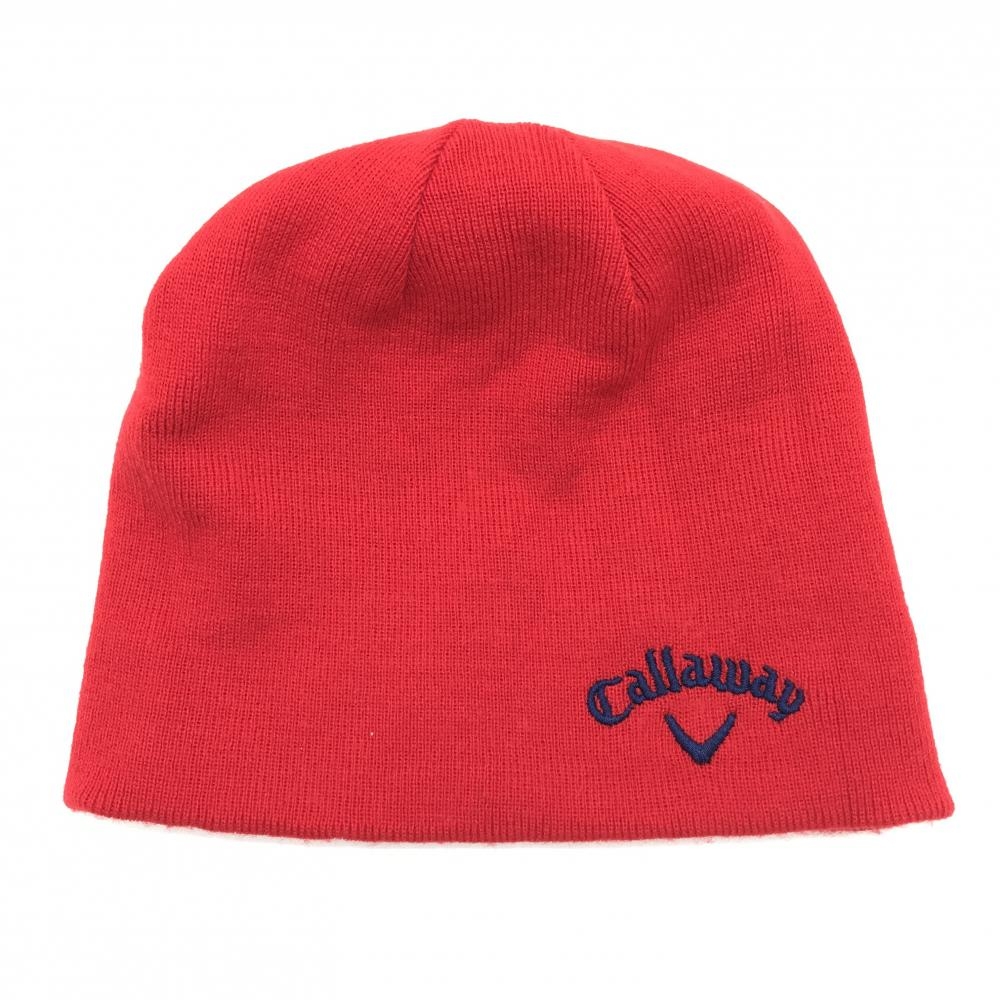 【超美品】キャロウェイ リバーシブルニット帽 レッド×ネイビー ロゴ刺しゅう フリー ゴルフウェア Callaway
