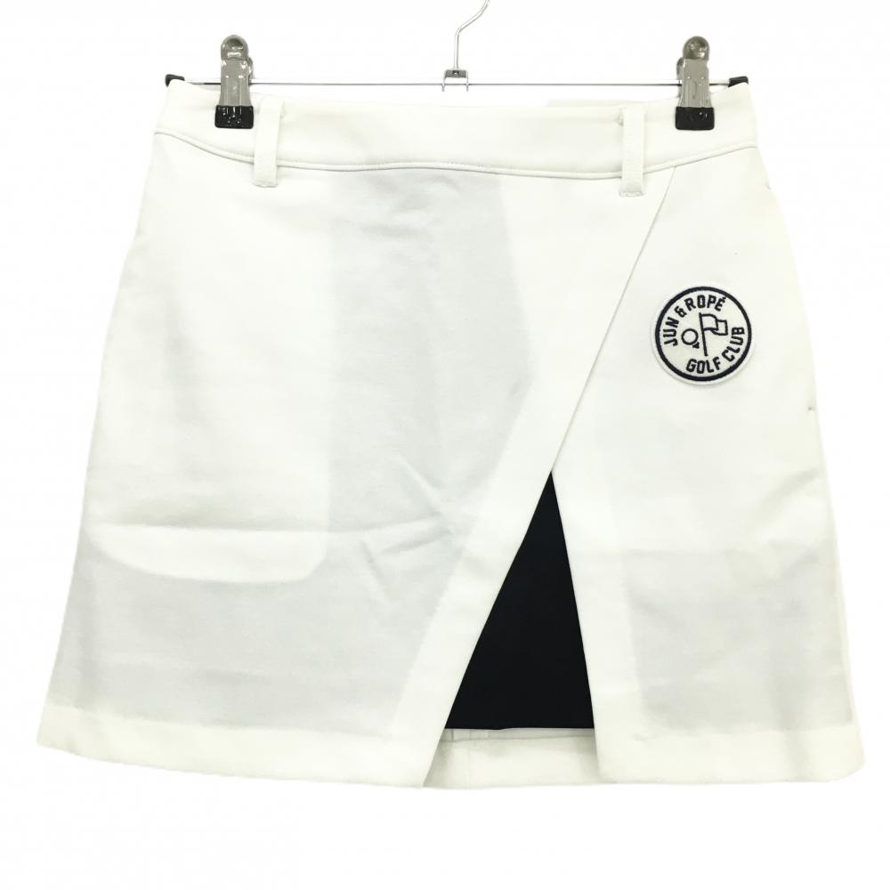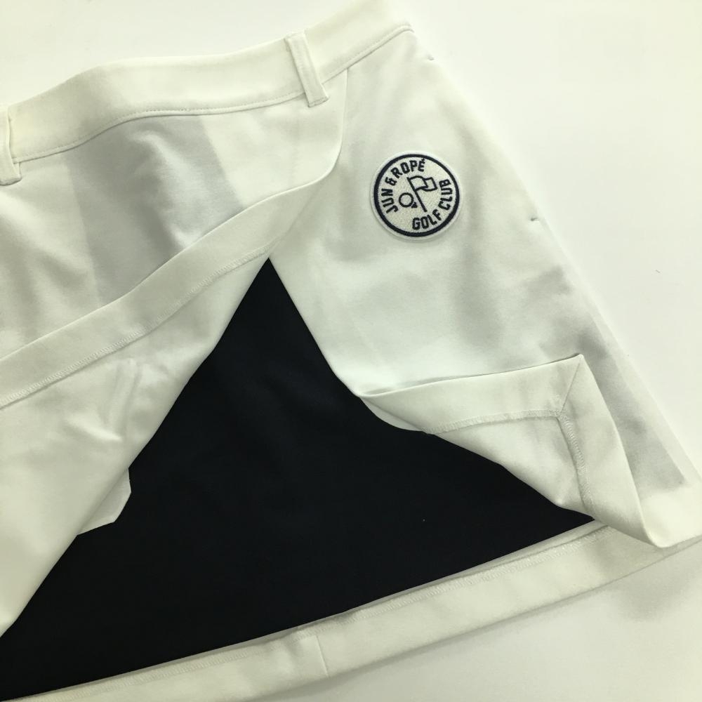 【新品】ジュンアンドロペ スカート 白×ダークネイビー ロゴワッペン インナーパンツ付 レディース S ゴルフウェア JUN&ROPE