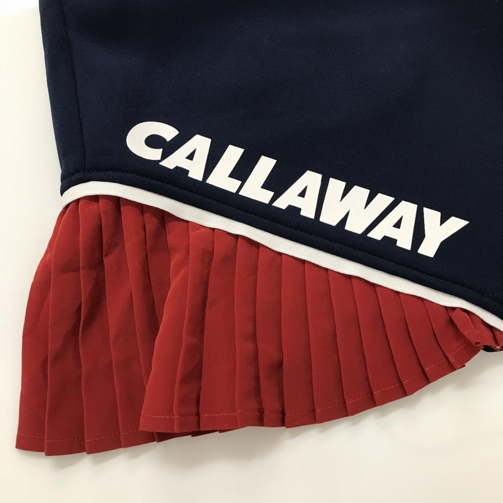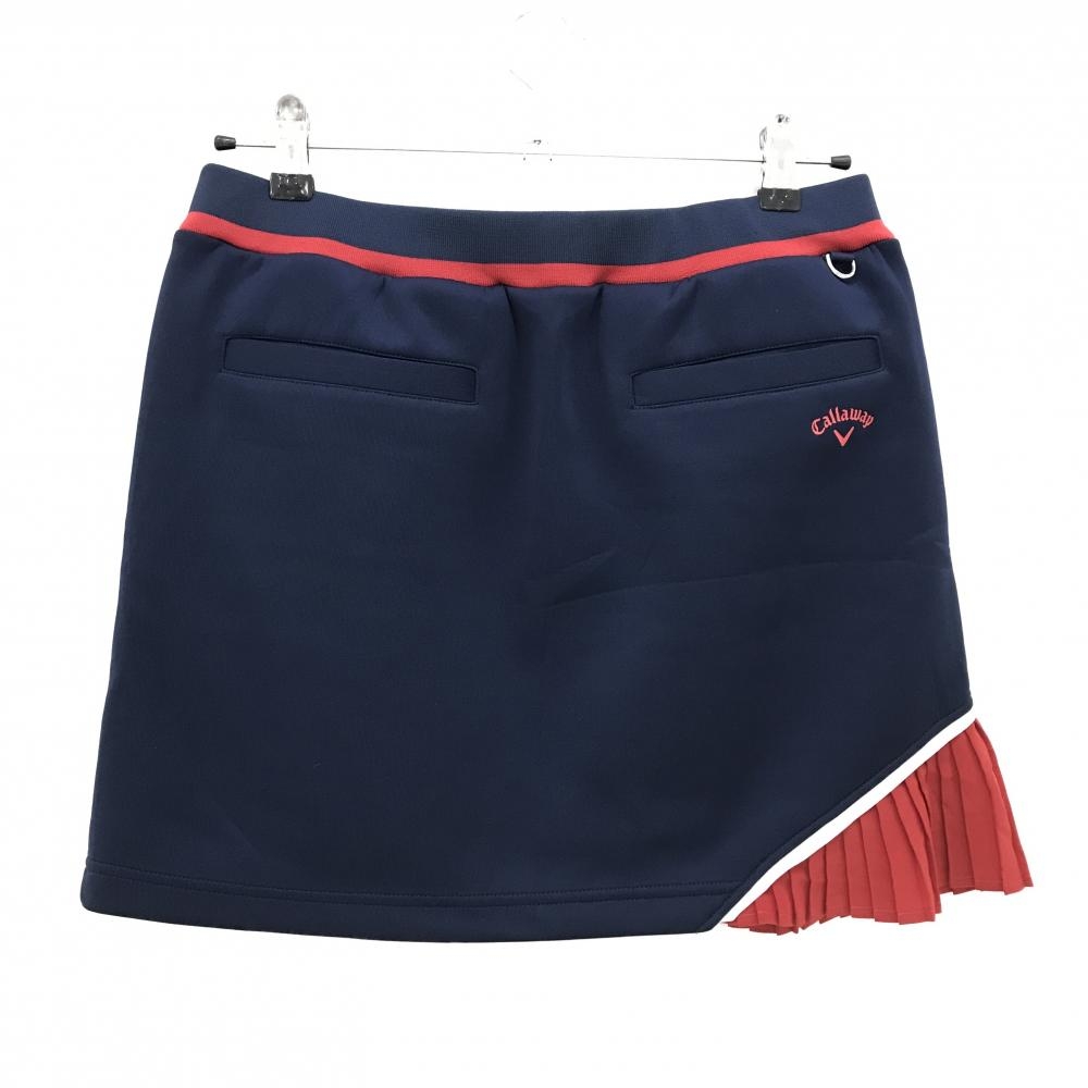 【超美品】キャロウェイ スカート ネイビー×レッド 裾一部プリーツ ロゴプリント レディース L ゴルフウェア Callaway