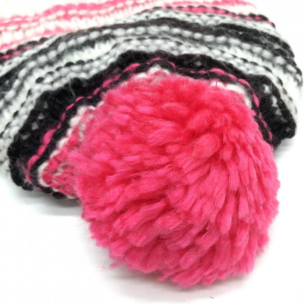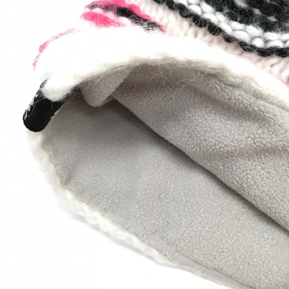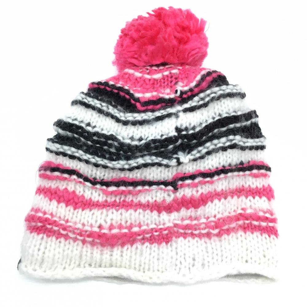【美品】カッパ ニット帽 白×ピンク ボンボン付き 内側フリース レディース F ゴルフウェア Kappa