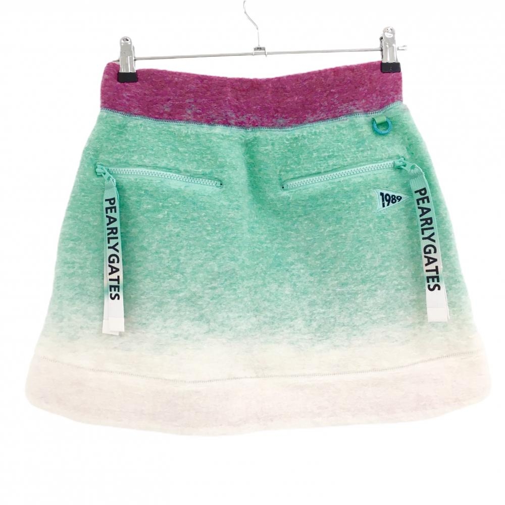 【美品】パーリーゲイツ ボアスカート ライトグリーン×ピンク×白 レディース 1(M) ゴルフウェア 2023年モデル PEARLY GATES
