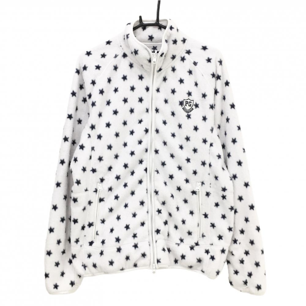 【美品】パーリーゲイツ 6WAYジャケット 白×ネイビー フリース付 木 星柄 フード収納 袖着脱可 メンズ 6(XL) ゴルフウェア PEARLY GATES