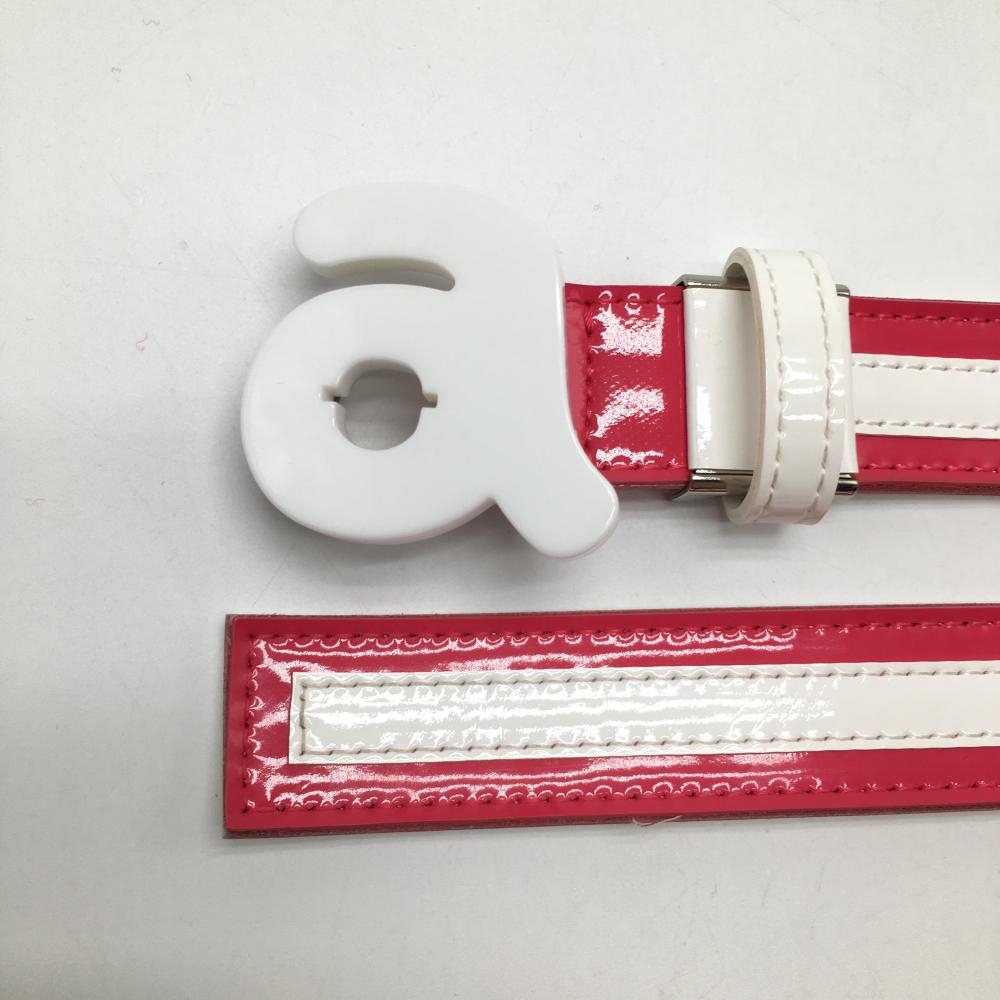 【美品】アルチビオ トップ式ベルト ピンク×白 ボーダー エナメル レディース ゴルフウェア archivio