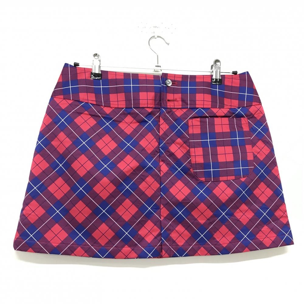 【超美品】プーマ スカート ピンク×ネイビー チェック ストレッチ 裏起毛 インナーパンツ付き レディース O(XL) ゴルフウェア PUMA