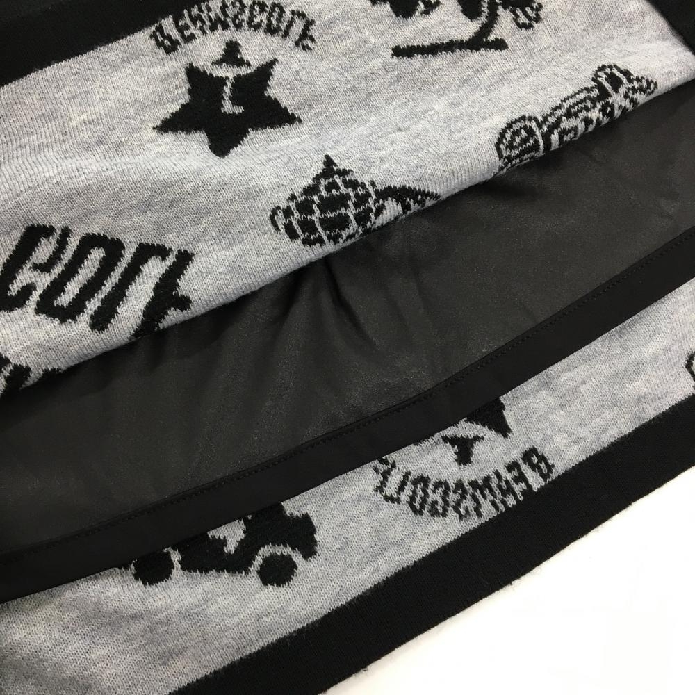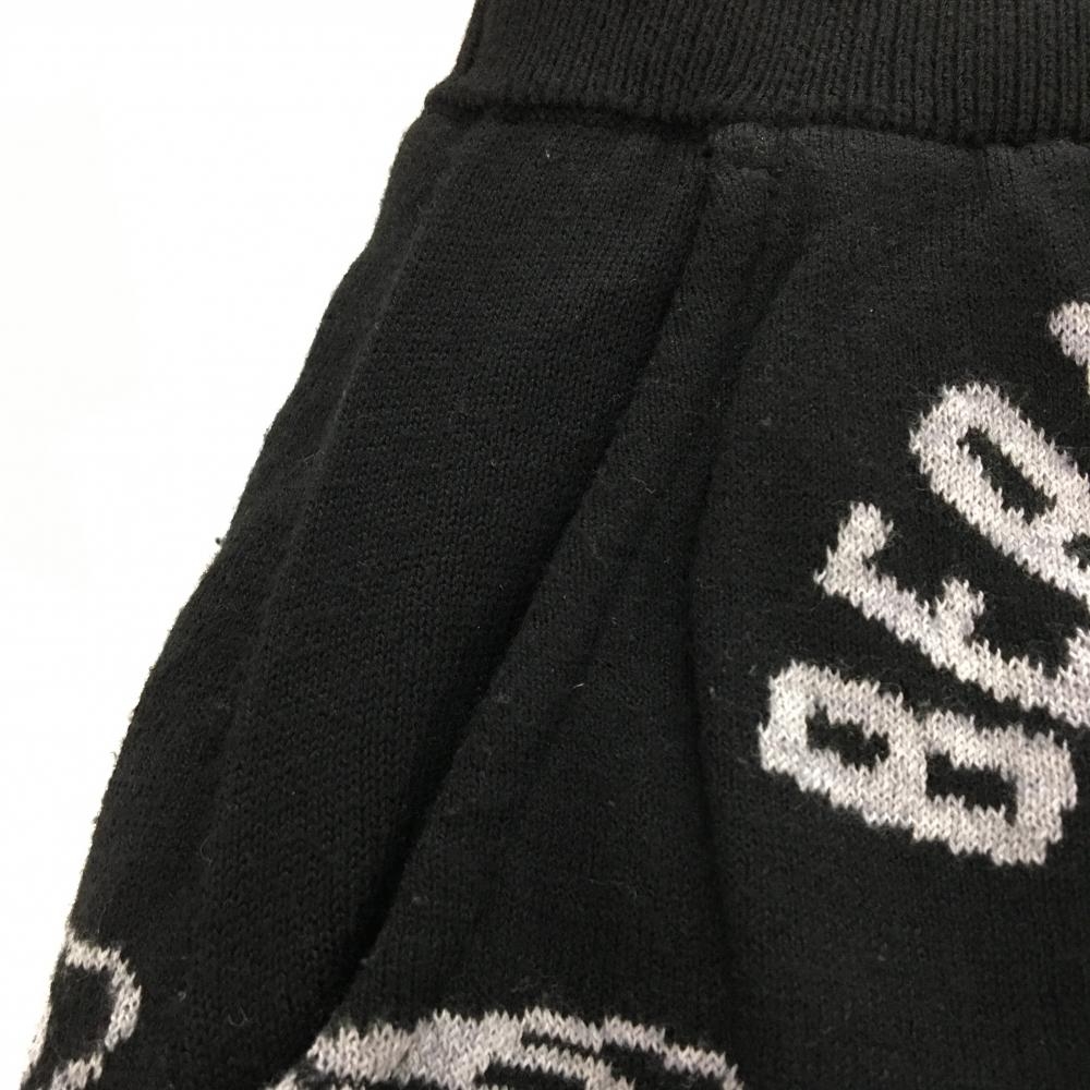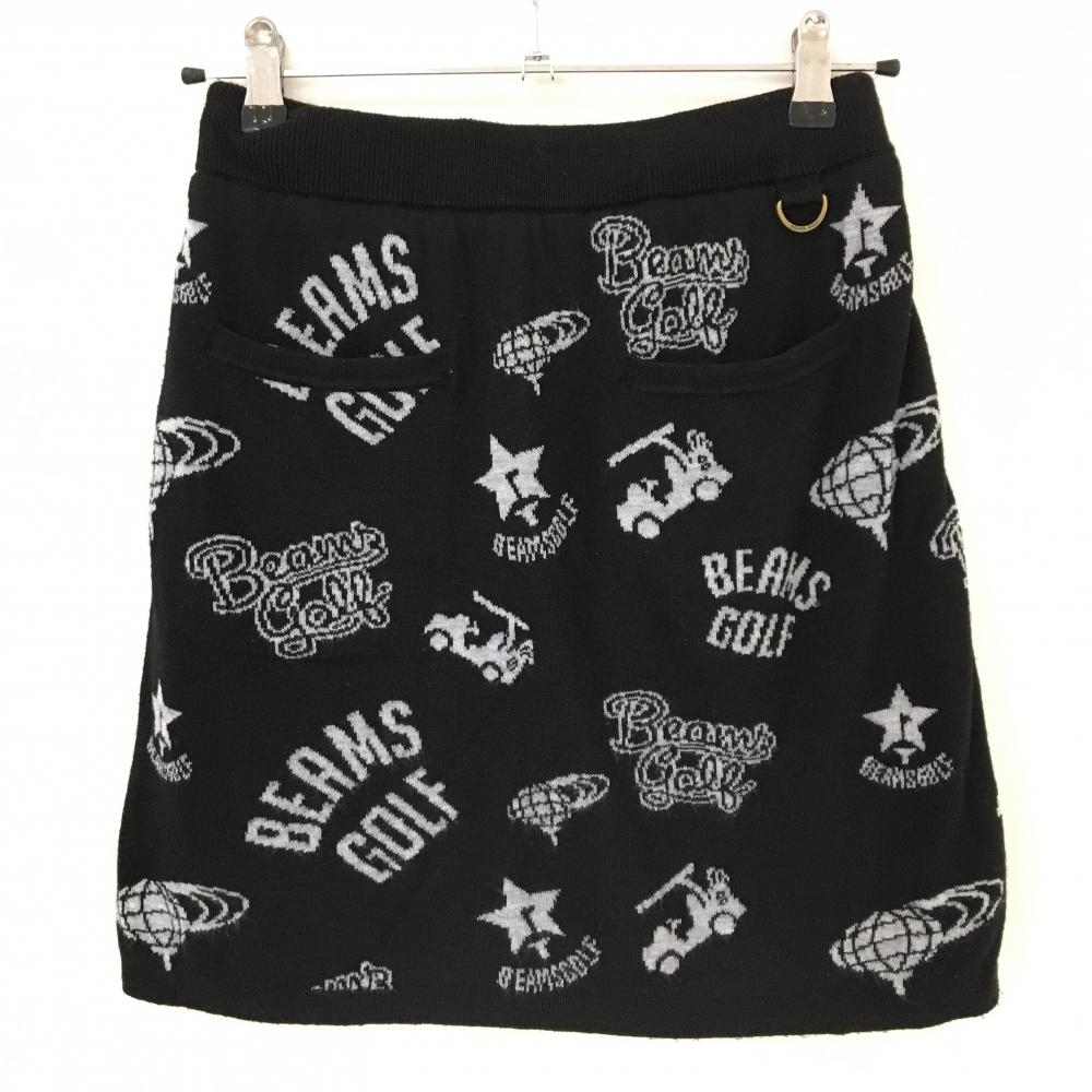 【美品】ビームスゴルフ ニットスカート 黒×ライトグレー ロゴ総柄 ウエストゴム 裏地付き レディース M ゴルフウェア BEAMS GOLF