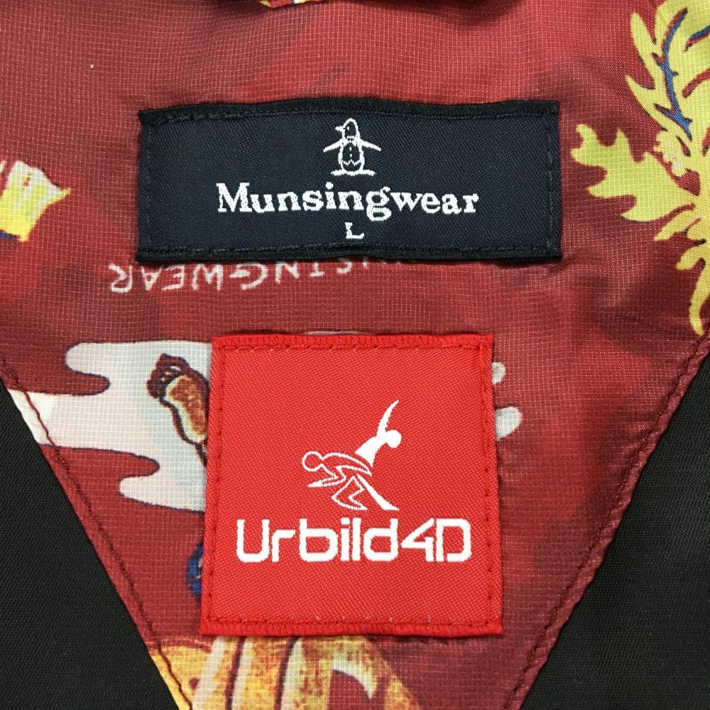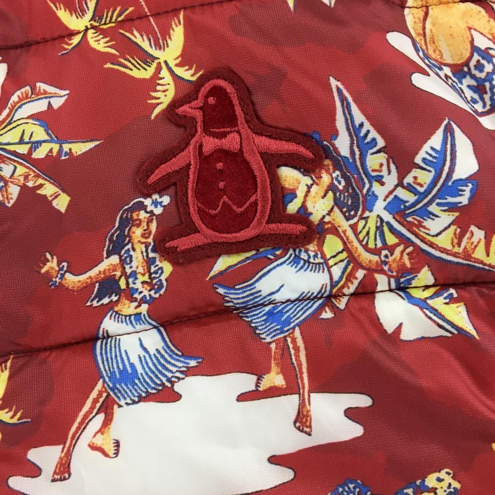 【超美品】マンシングウェア 中綿ベスト レッド×イエロー 総柄 マリン柄 メンズ L ゴルフウェア Munsingwear