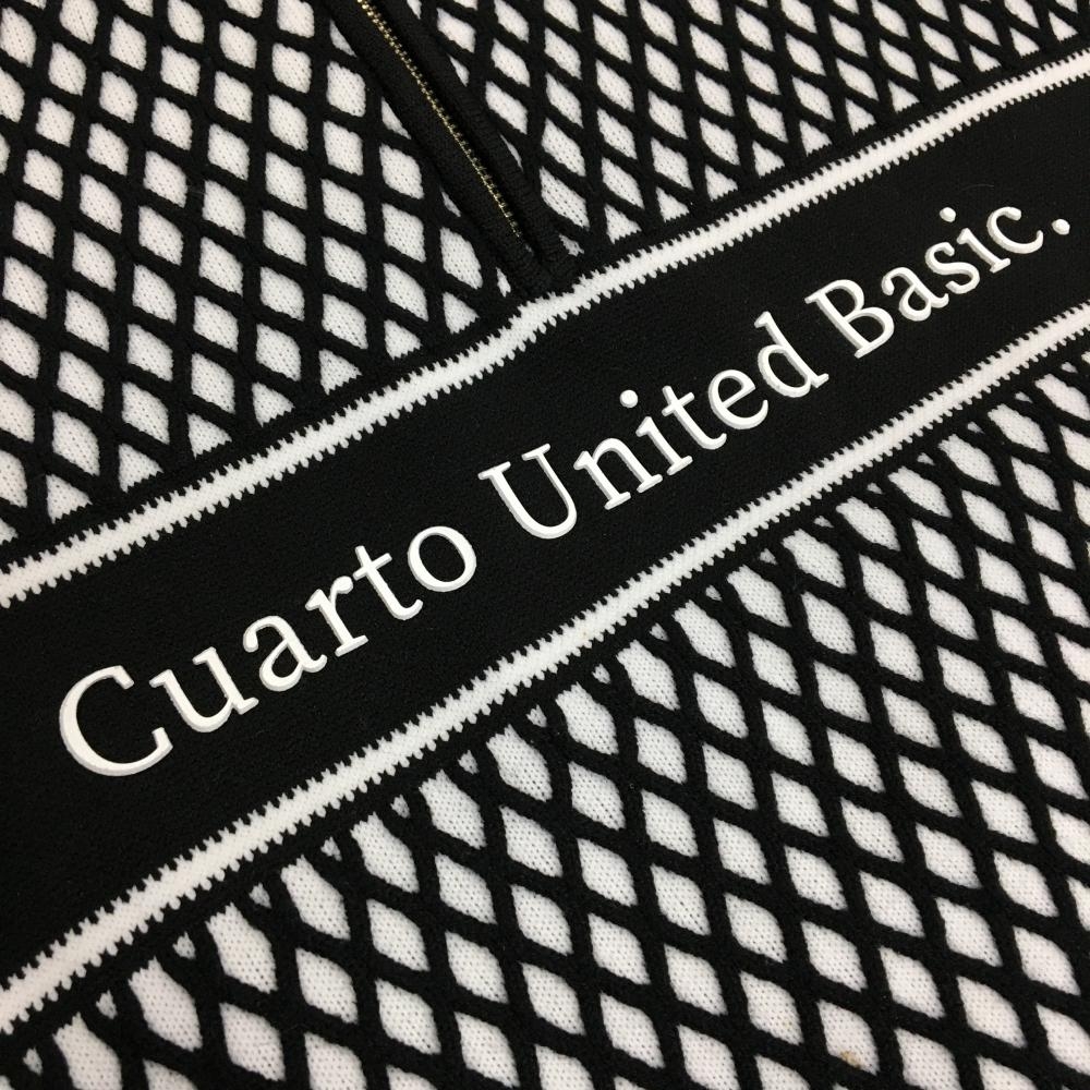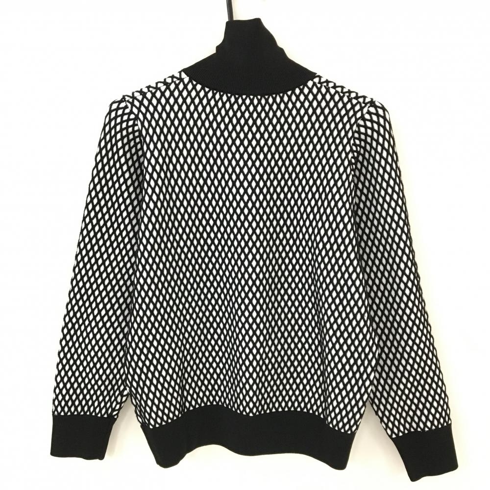 【超美品】クアルトユナイテッドベーシック ハイネックセーター 黒×白 ダイヤ柄 ハーフジップ レディース M ゴルフウェア CUARTO UNITED