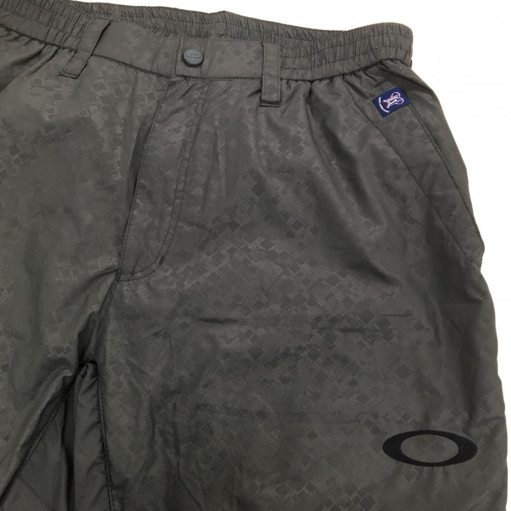 【美品】オークリー パンツ ダークグリーン 前面柄 裏起毛 ウエストゴム メンズ L ゴルフウェア Oakley