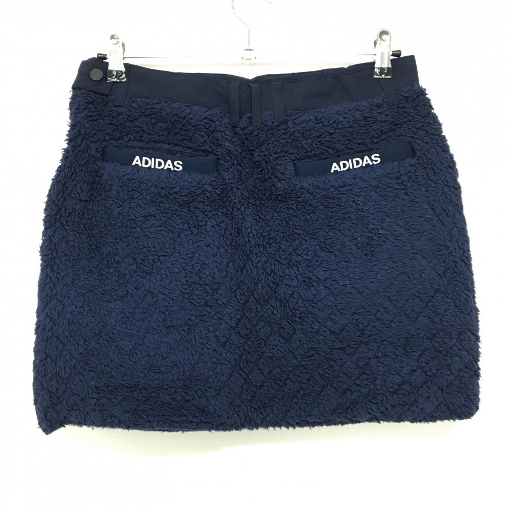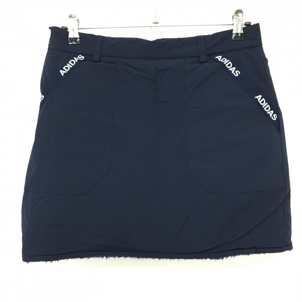 【美品】アディダス リバーシブルスカート ネイビー ボア 裏無地 ボアへたり レディース L/G ゴルフウェア adidas