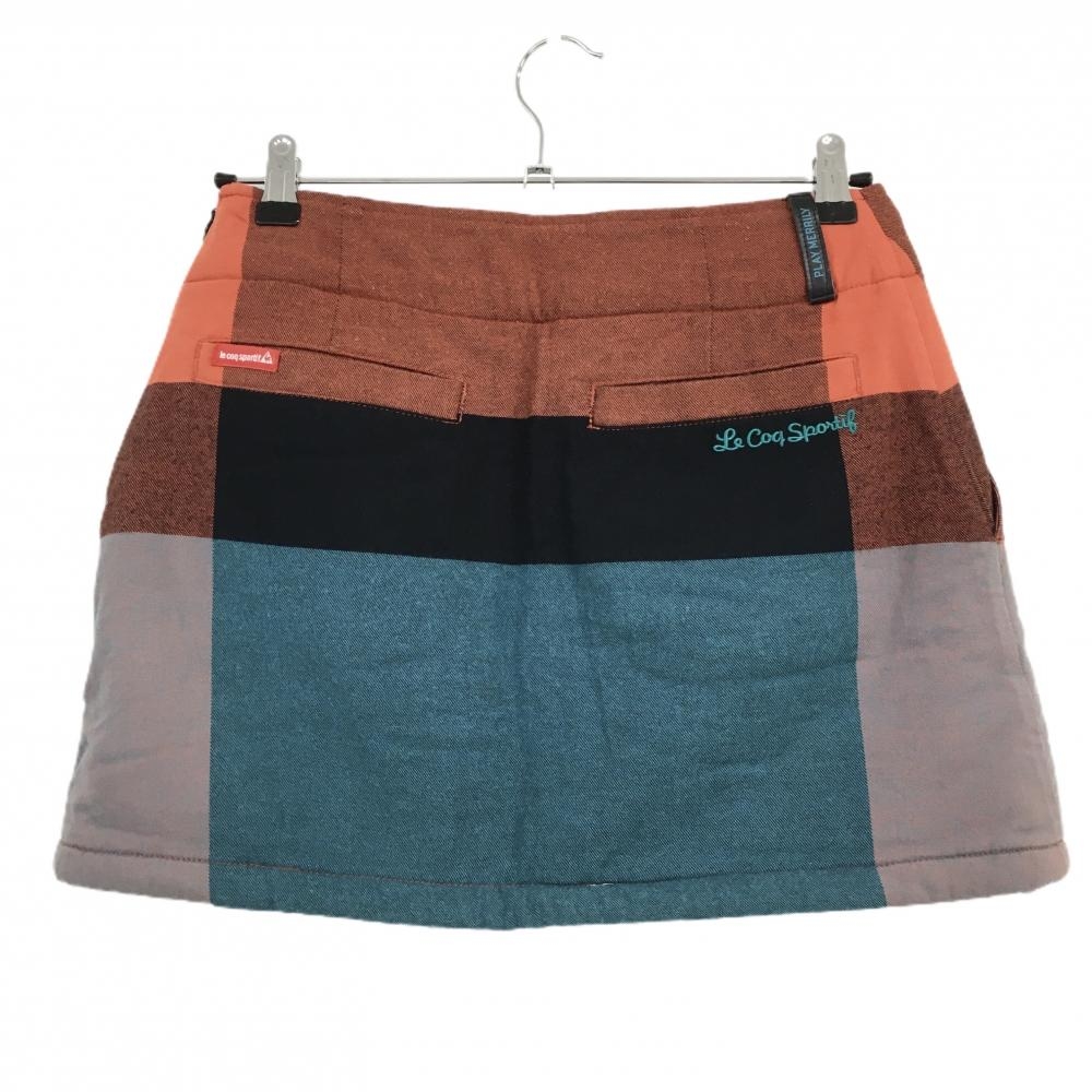 ルコック スカート オレンジ×ライトブルー 裏ボア 厚手 レディース 7 ゴルフウェア le coq sportif