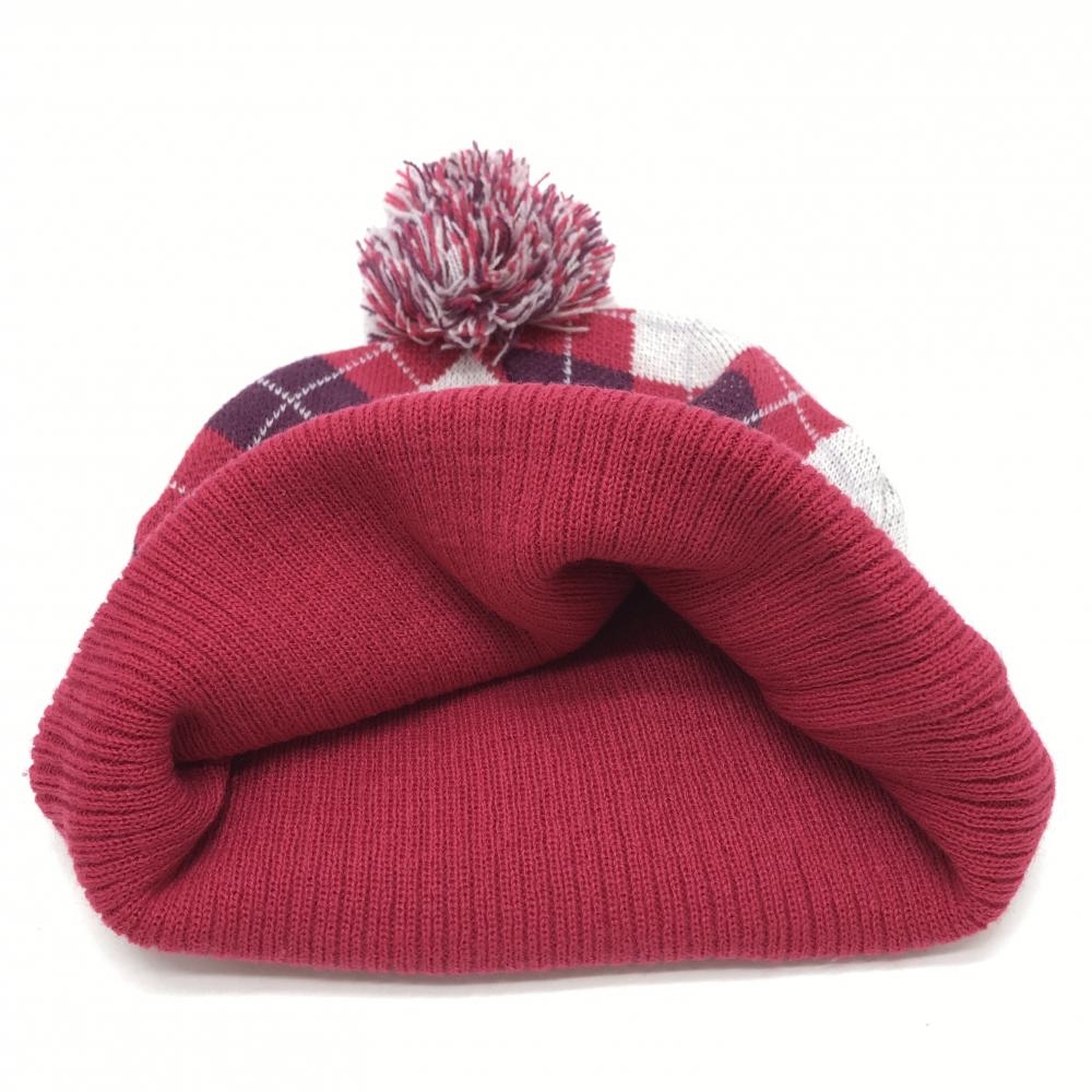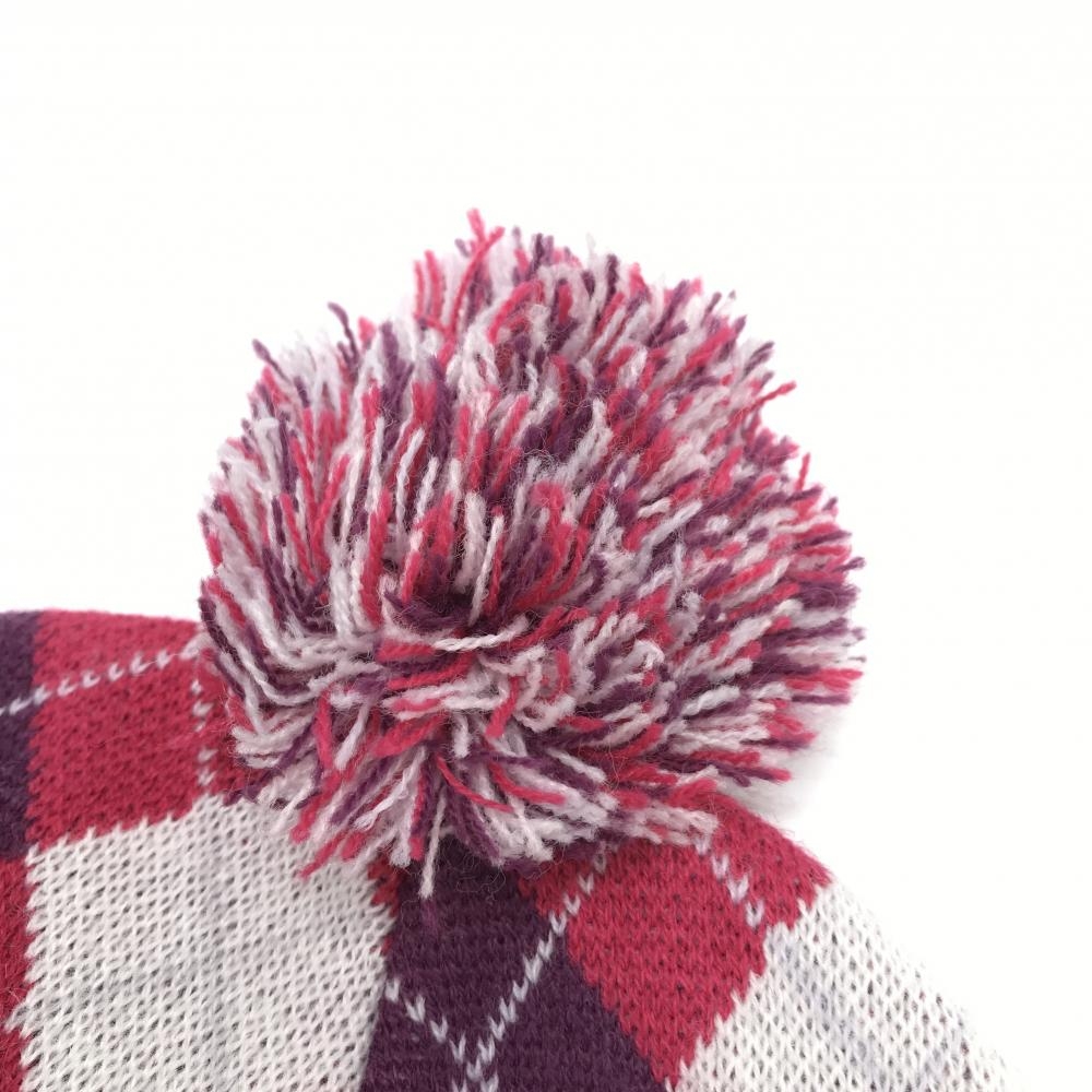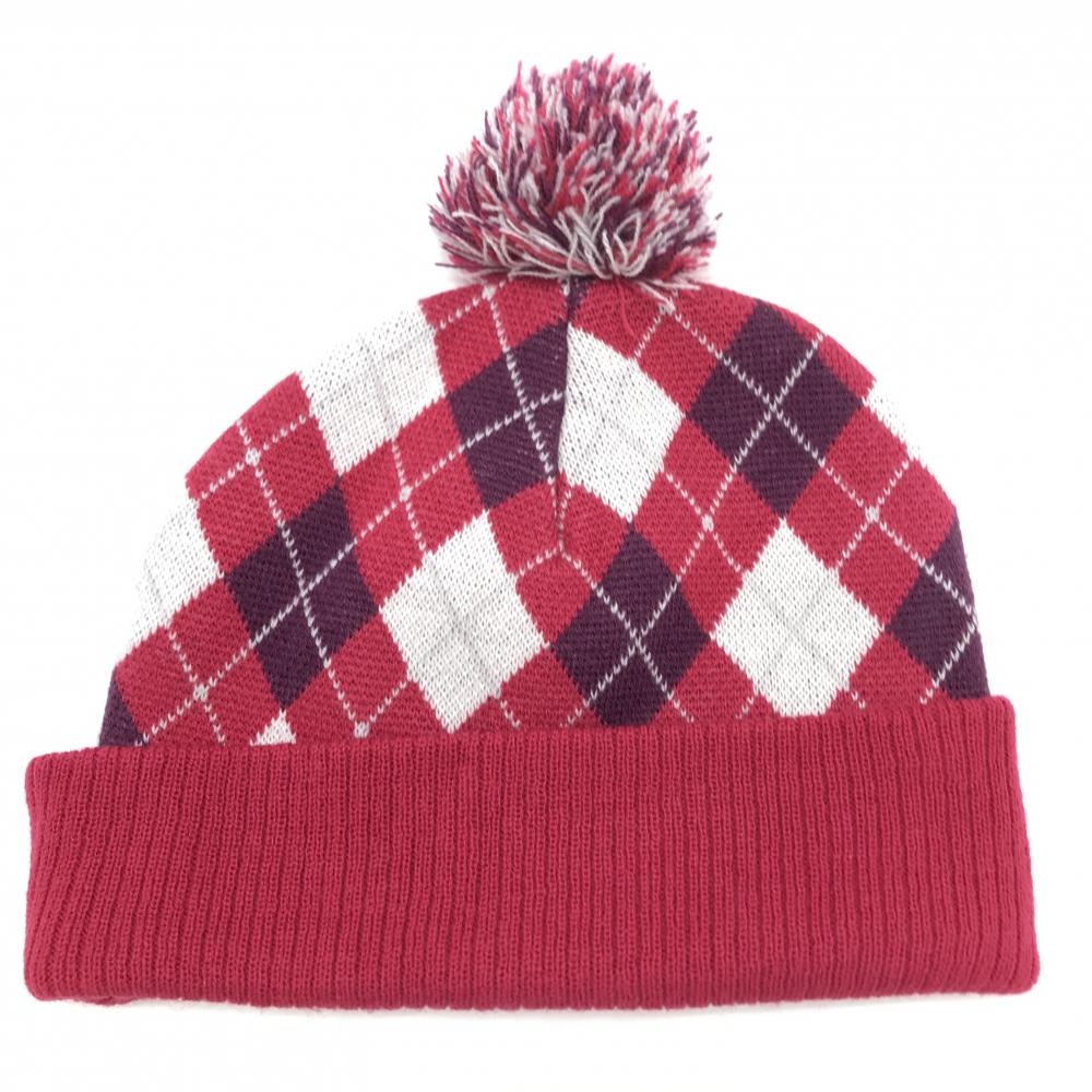 【超美品】スリクソン ニット帽 レッドピンク×パープル アーガイル柄 ボンボン付き フリーサイズ ゴルフウェア SRIXON