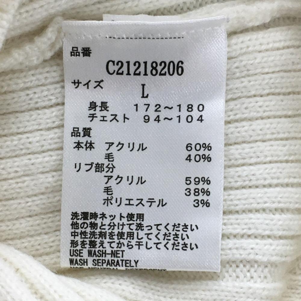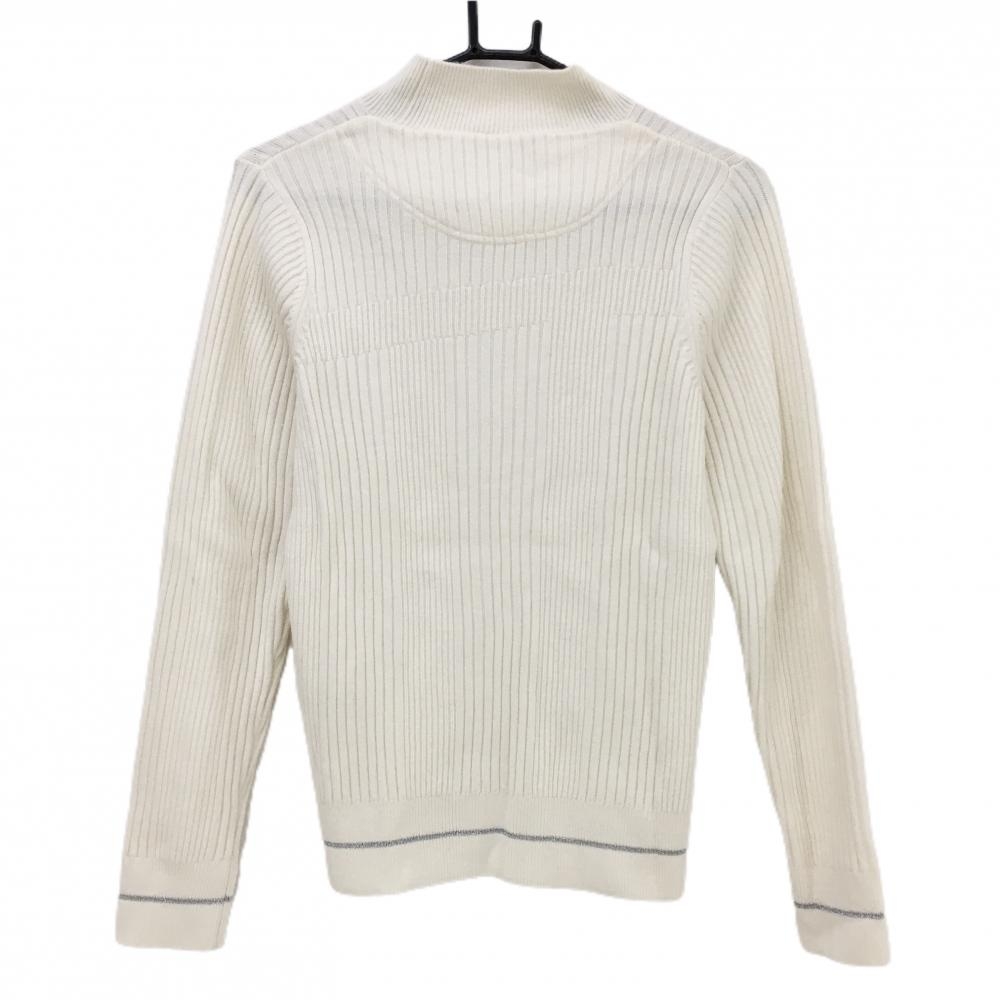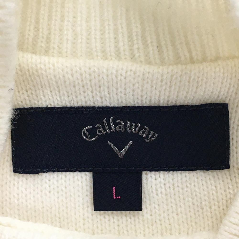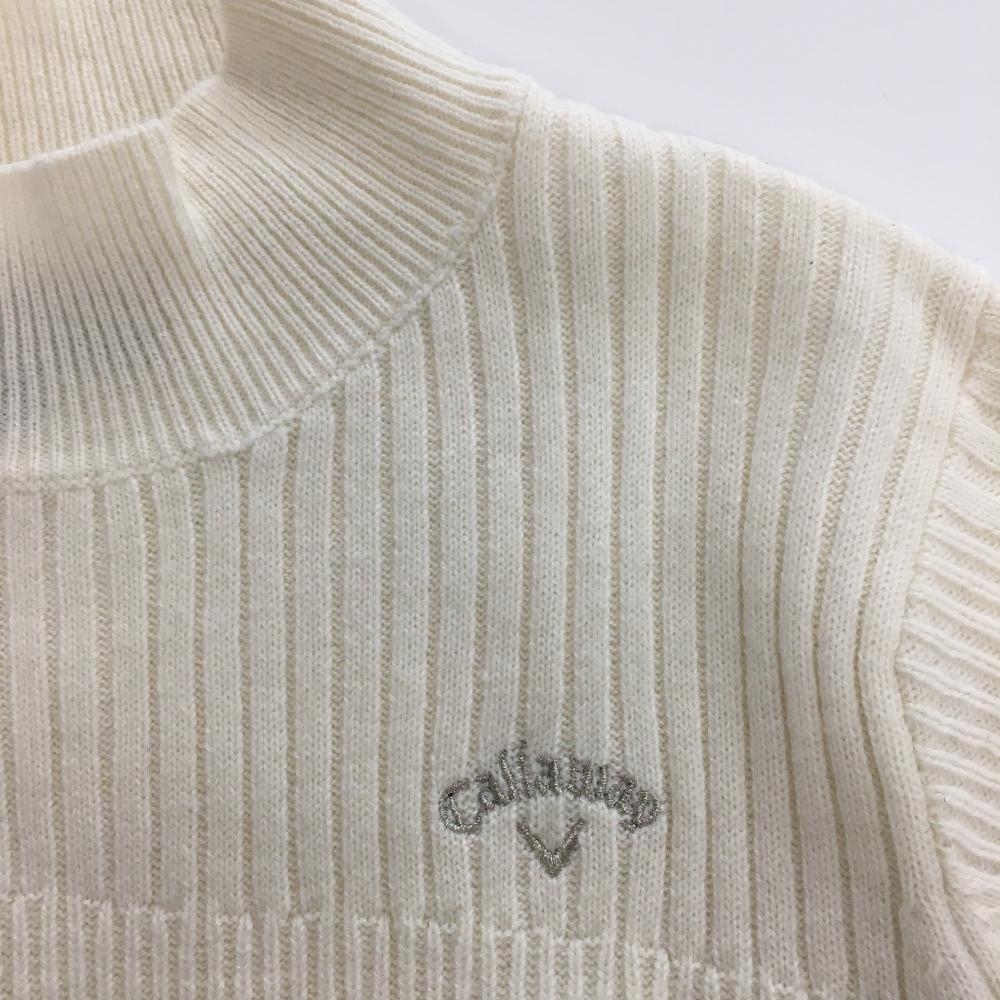 【超美品】キャロウェイ ハイネックセーター 白 ストライプ編み ニット ウール混 ラメ レディース L ゴルフウェア Callaway