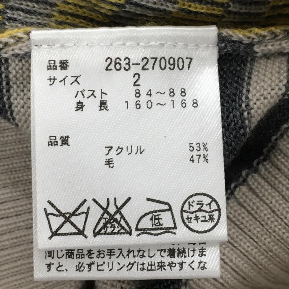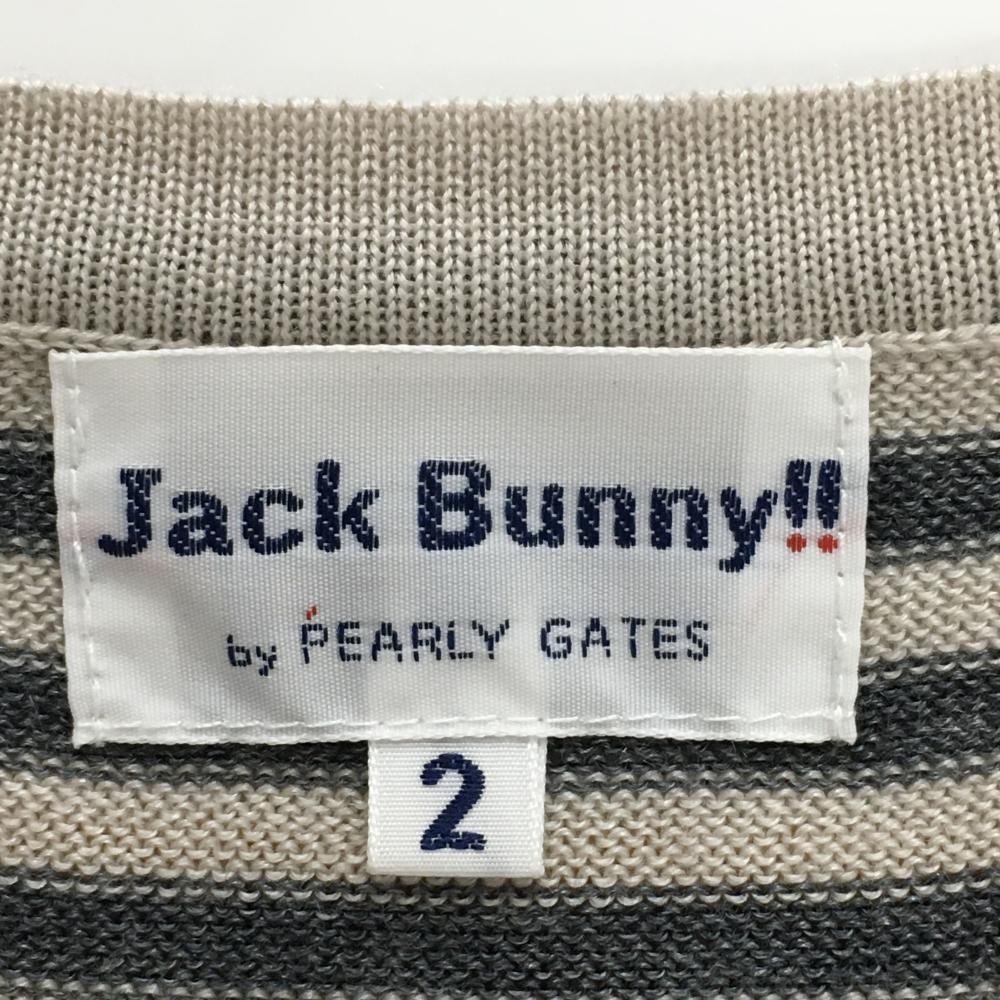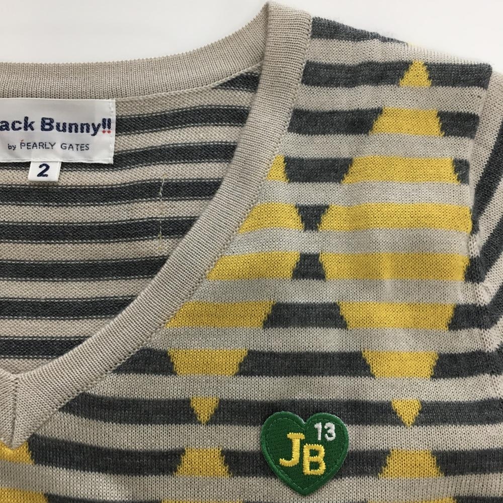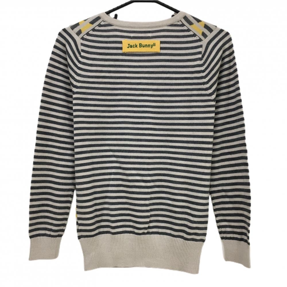 【超美品】ジャックバニー セーター ライトベージュ×ダークグレー ボーダー 前身頃ダイヤ柄 レディース 2(L) ゴルフウェア Jack Bunny